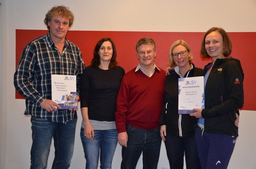 von links: Stellv. Vorsitzender Sebastian Hollweck, Übungsleiterin Claudia Neubauer, BLSV-Kreisvorsitzender Florian Weiß, Schatzmeisterin Viola Brunner und Vorsitzende Anka Rostock.