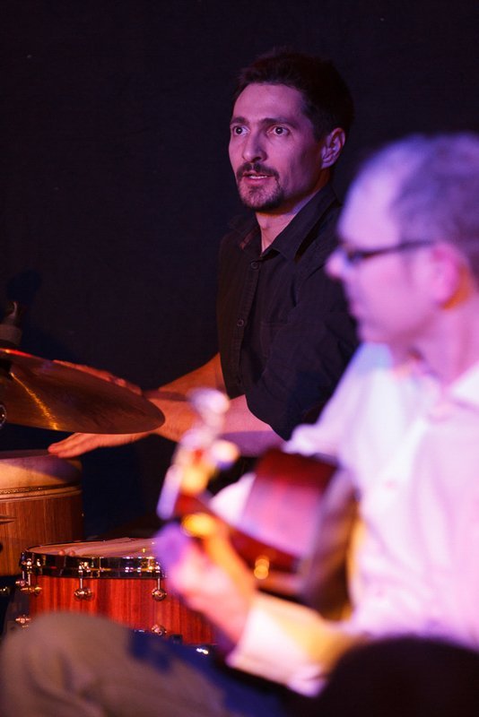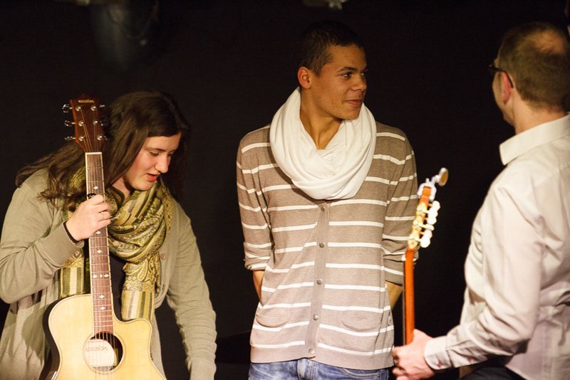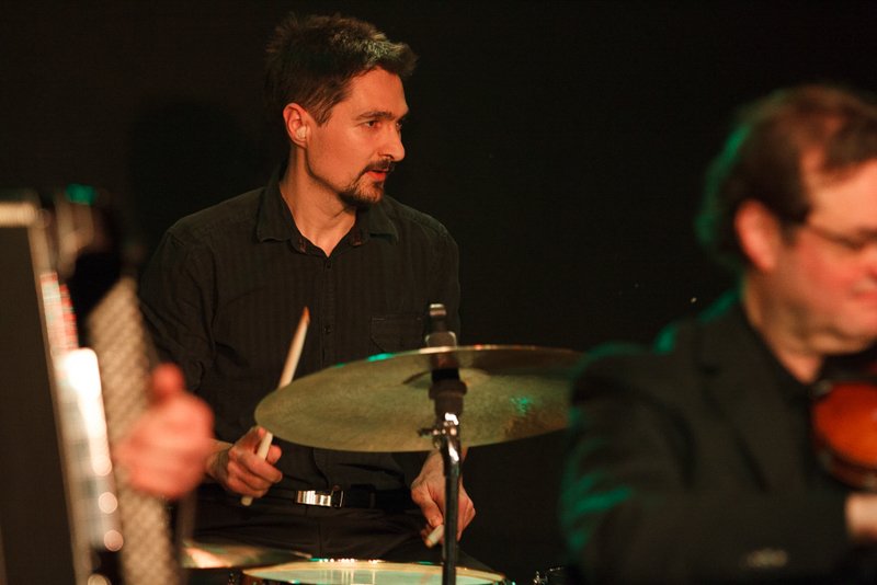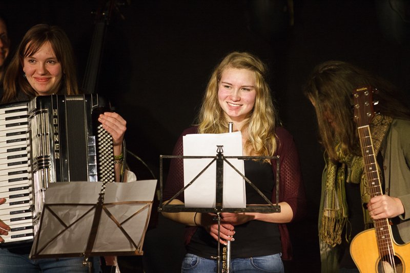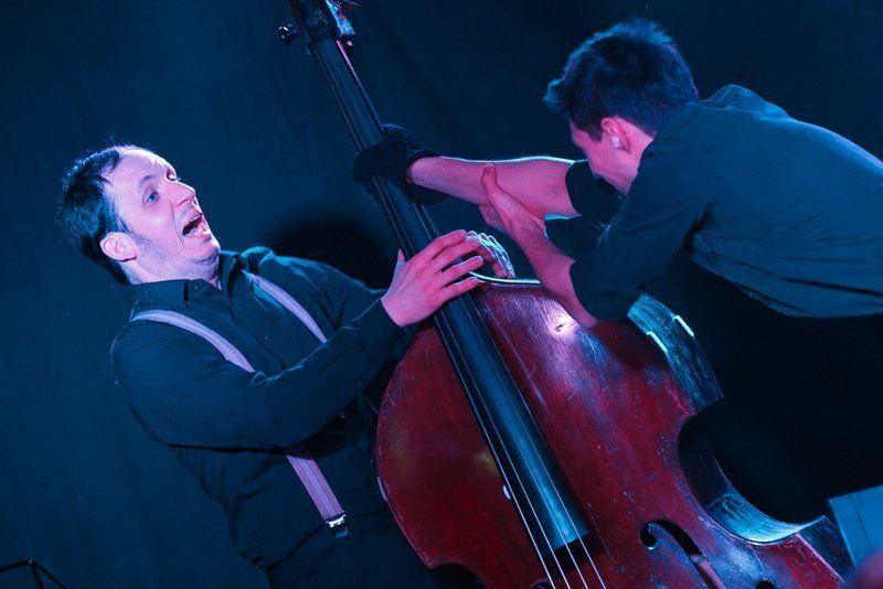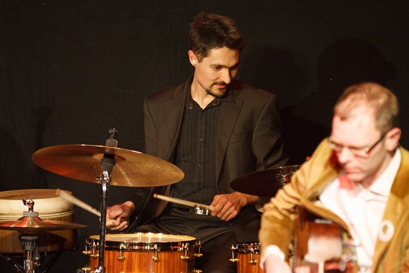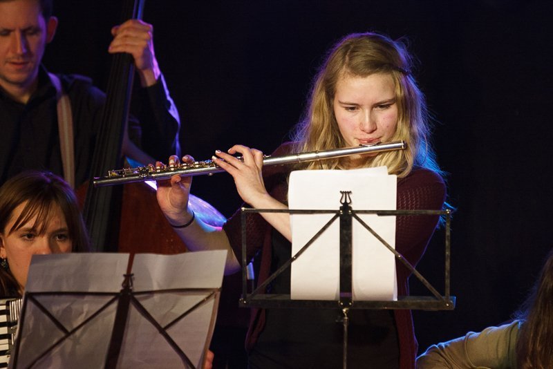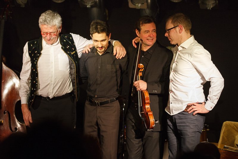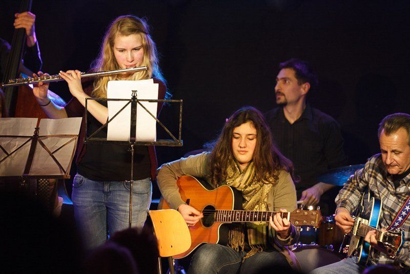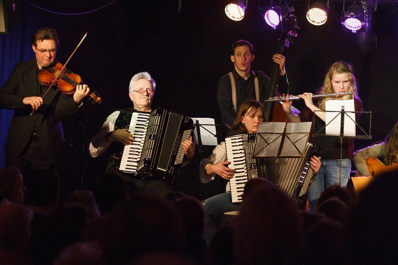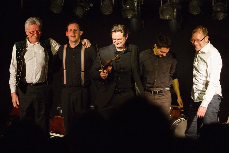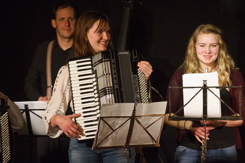 Weiter ging die Reise über Bulgarien mit Stücken im exotischen 15/16-Takt, Dänemark mit "Reel Fionia" und für Rumänien spielte Radio Europa einen traditionellen Hochzeitstanz in 7/4 - wer ihn zählen kann, kann darauf auch ewig tanzen. Jeder der fünf Musiker ist eine Größe für sich selbst. So zupfte Bassist Alex Bayer seine Seiten zwar recht im Hintergrund, lieferte sich aber mit Drummer Duckarm wenig später eine Zeitlupen-Instrumentenschlacht, die nicht nur sehr abstrakt, sondern auch aberwitzig war. Musiker eben, etwas verrückt, aber das muss ja wohl sein. Das Konzert war der zweite Termin im Rahmenprogramm der Pfaffenhofener Winterbühne und war absolut ausverkauft. Außerdem gaben die Musiker an der Pfaffenhofener Mittelschule zwei Workshops, in denen die jungen Musiker, die daran teilnahmen, lernten, mit Improvisation wie im Jazz umzugehen. Am Freitag standen sie dann mit den Profis von Radio Europa auf der Intakt Musikbühne.