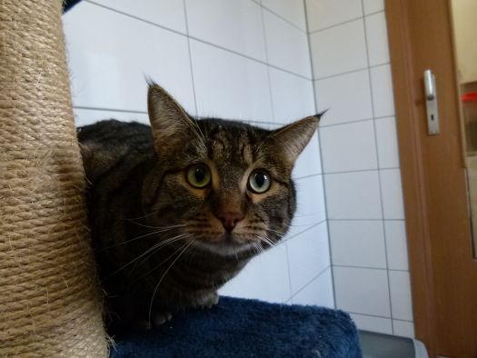 Er könnte auch in reine Wohnungshaltung (evtl. mit vernetztem Balkon) vermittelt werden. An einen gesicherten Freigang muss Karli sich erst gewöhnen.