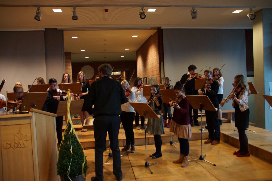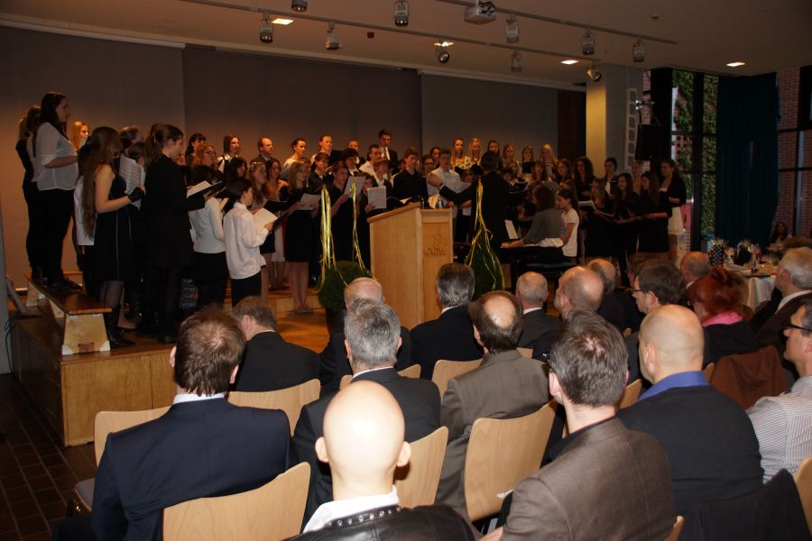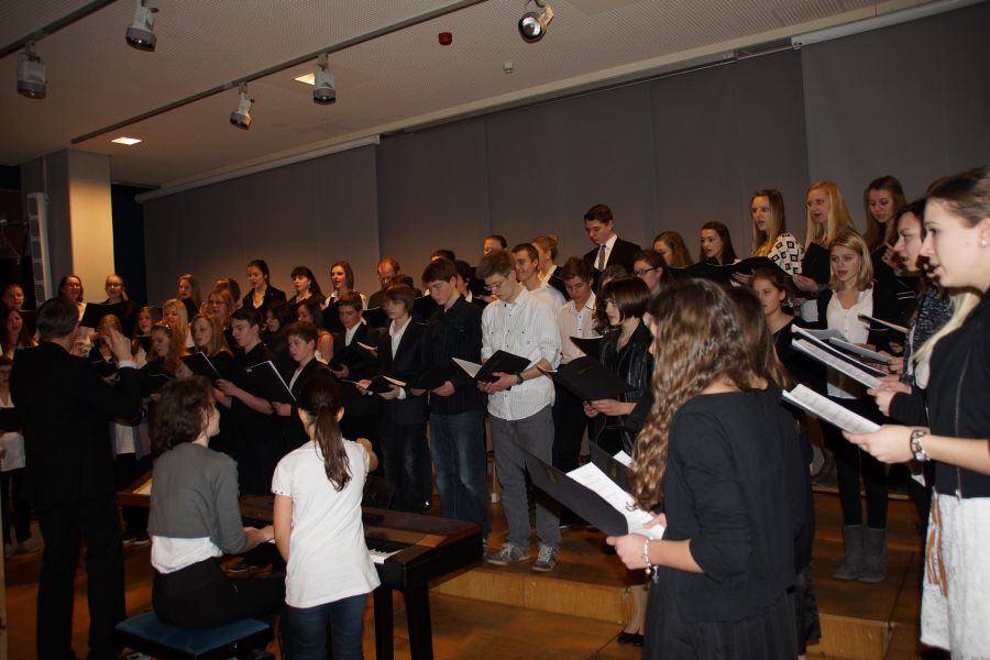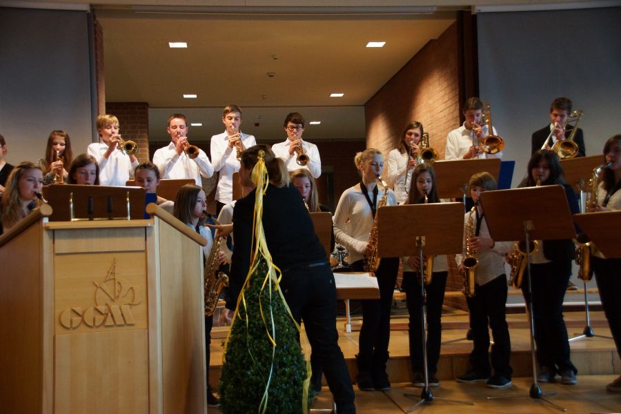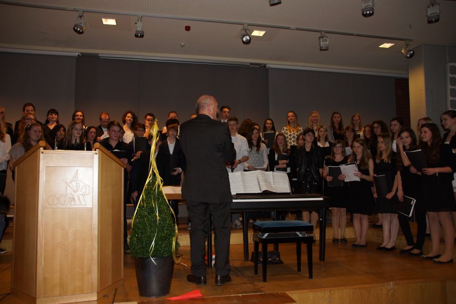 Seine besten Wünsche galten den Schülerinnen und Schülern für einen erfolgreichen Abschluss ihrer Schullaufbahn, und dem GGM wünschte er auch weiterhin viel Erfolg in seiner Erziehungsarbeit. Der Schulchor, der am Ende der offiziellen Verabschiedung „Time to leave“ sang, rührte ihn fast zu Tränen, aber auch vielen Anwesenden war dieselbe Emotion ins Gesicht geschrieben. Schließlich wollte Herr Ludwig noch auf seinen Abschied anstoßen und lud alle Anwesenden zu einem gemeinsamen Umtrunk und einem kleinen Imbiss in die Mensa ein.