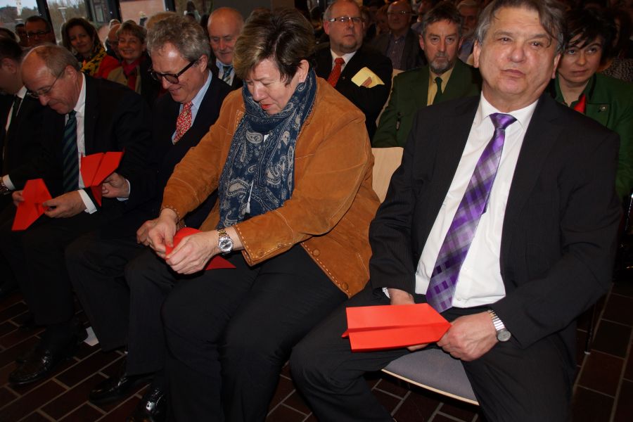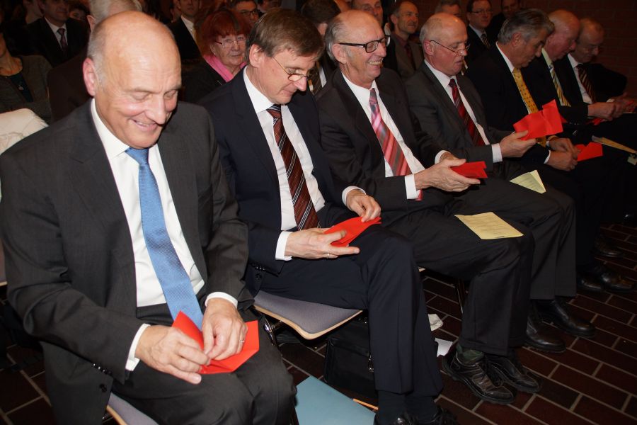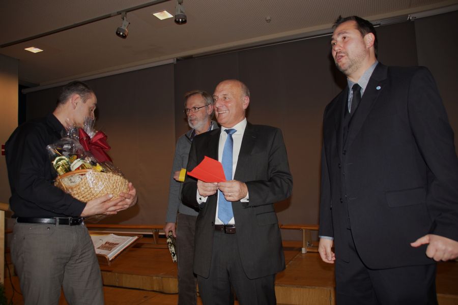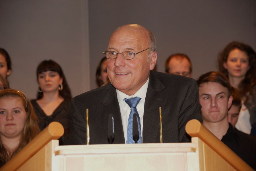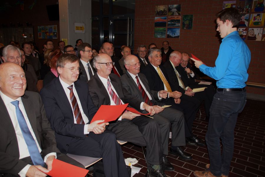 Aber nicht nur die zahlreichen Sanierungsmaßnahmen, Um- und Anbauten erschwerten das Schulleben massiv, auch die Einführung des G 8 sorgte für große Unruhe bei Eltern, Schülern und auch Lehrern. Doch er als Schulleiter führte die Schule kraftvoll und unermüdlich durch diese unruhigen Zeiten. Herr Räde lobte diese Riesenleistung, die er vollbracht hat und meinte, dass alle hier den Hut dafür ziehen müssten.