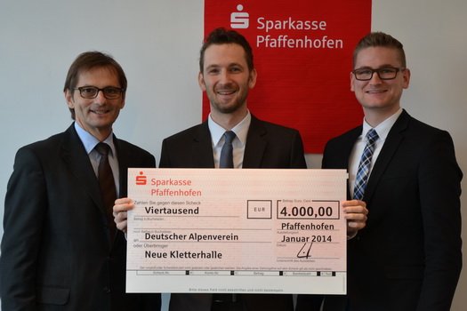 „Einen Scheck in Höhe von € 4.000,00 überreichte Sparkassenvorstand Norbert Lienhardt an den Deutschen Alpenverein, Sektion Pfaffenhofen- Asch.