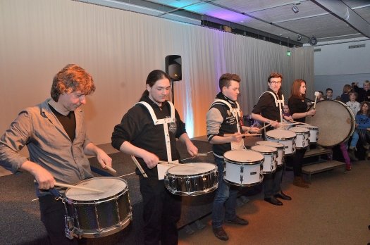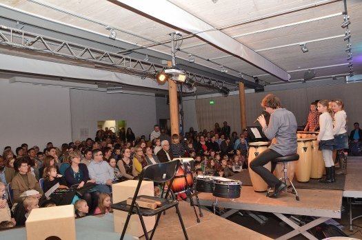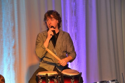 Ebenso unerwartet wie groß war der Andrang beim Percussion-Konzert, das Rolf Berger zusammen mit seinen Percussion-Schülern im Deutschen Hopfenmuseum gab. Über zweihundert Zuhörer drängten sich bis weit hinter die Eingangstüre, während drinnen enthusiastisch getrommelt wurde.
