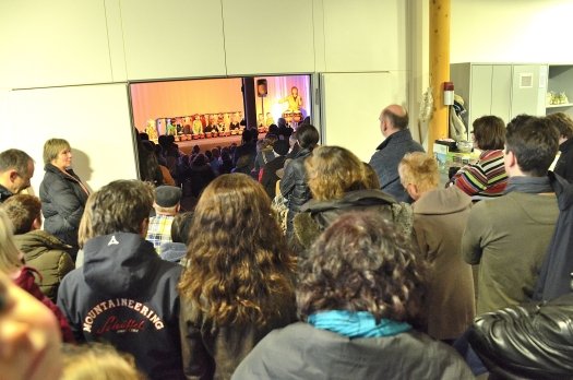 Als "logistischen Wahnsinn" bezeichnete Berger das abwechslungsreiche Spiel mit ständig wechselnder Besetzung auf zwei Bühnen. Am Ende bahnten sich die "Backs Dosch" ihren Weg durchs Publikum - mit ihren Umhängezeug spielten sie eindrucksvoll "Street March".