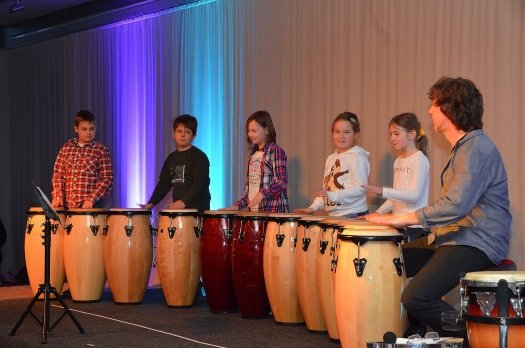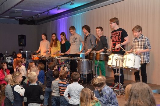 "Opa Nilpferd" und "Waldi Dackel Wiesenwedel" intonierten die 5 bis 6-Jährigen aus der Anfänger-Kindertrommelgruppe. Die nachfolgenden Jahrgangsstufen bis hin zu den Elfjährigen durften ihre Bongo- und Conga-Paare zu "Fußballspiel", "Football-Groove" und "Hot Rods" ertönen lassen. Ein buntes Gemisch aus Wolnzacher und Allershausener Drummern schossen ein beinahe zwei Stunden dauerndes Trommelfeuer mit abwechslungsreichen Rhythmen ab. Als "ganz besonderes Highlight" bezeichnete Berger das Trommelstück für den diesjährigen Festzug zur 1200-Jahr-Feier des Marktes Wolnzach. "Natürlich in voller Länge – denn beim Festzug erlebt es der Zuschauer ja nur so im Vorbeimarschieren", meinte Berger.