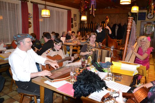 Zum Wirtshaussingen trafen sich die Gesangsfreunde aus der ganzen Region im Sportheim Fahlenbach. Und da die monatliche Gesangsrunde in die Faschingszeit fiel, waren natürlich viele Gesangsfreunde verkleidet, was der großen Runde noch mehr Flair verlieh. Neben Gesang hatten einige der Teilnehmer auch kleine Sketche und Gags vorbereitet. Das brachte natürlich noch mehr Stimmung in den Saal.