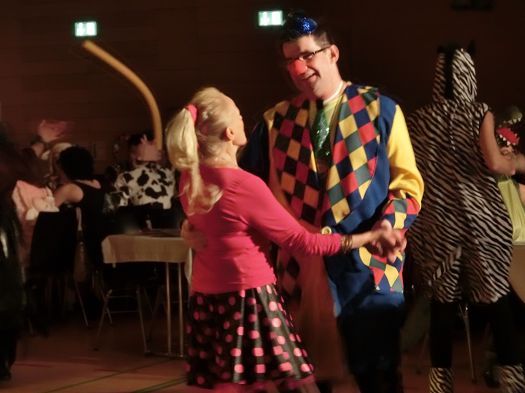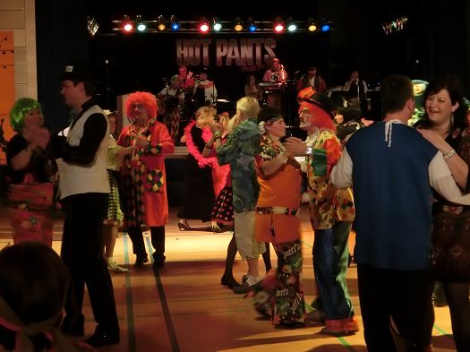 Bürgermeister Karl Ecker, im Clownskostüm, ließ es sich nicht nehmen, zur Musik der Band Hot Pants, einer Gruppe von Holledauer Musikern, fleißig das Tanzbein zu schwingen. Auch zahlreichen Ballbesuchern ging die flotte Musik direkt in die Beine, so dass die Tanzfläche immer voll besetzt war. Für das leibliche Wohl war ebenfalls bestens gesorgt, da konnten es die meisten Ballbesucher bis weit nach Mitternacht aushalten.