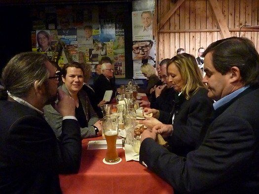 Bunte, Schwarze, Rote, Orange oder Gelbe Politikmenschen bekamen einen verbalen Schleudergang präsentiert, der sich im wahrsten Sinn des Wortes gewaschen hatte. Ob Stadtführungskultur der Pfaffenhofener Art, Königssuche, Wahlplakatsanalyse, Künstlercasting, Martinsumzugsgedöns, Wahlprogramm Plagiats Analyse, Eimermeditation, öffentliches Windrad Lauschen, Kandidaten Handy APP, Politiker Fußball Bericht, Überschriften gab es viele.