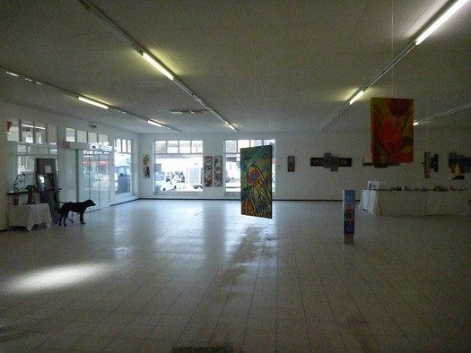 Kunterbunt oder erdig, vernagelt, gespachtelt oder lackiert, alles was das Künstler- und Liebhaberherz höher schlagen lässt, ist zu besichtigen und natürlich auch zu kaufen. Gut 80 Werke warten auf Betrachtung und Käufer, ungewöhnliche Werke von ungewöhnlichen Künstlern, an einem vom Konsum verlassenen Ort.