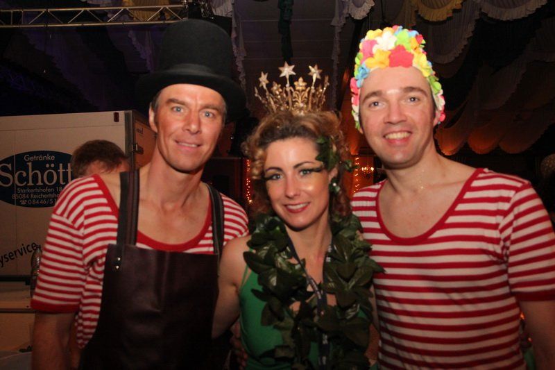Der letzte Applaus für die Artisten war noch nicht verhallt, da standen auch schon die ersten maskierten Partygänger vor den Toren der Volksfesthalle, denn die Tonellis luden nicht nur zum Zirkus, sondern auch zu einer Riesenparty. Bis in die frühen Morgenstunden feierten die faschingsfreudigen Wolnzacher gemeinsam mit der Band „Wipe out“.