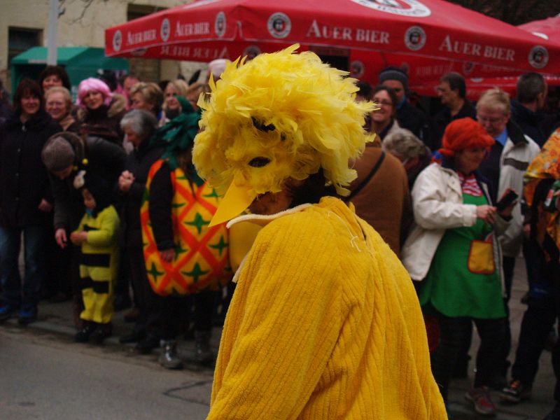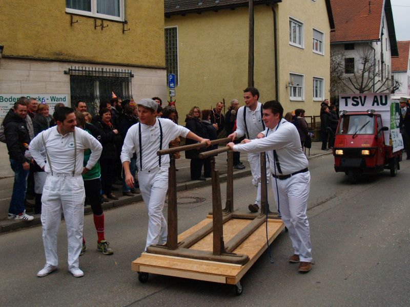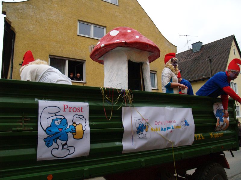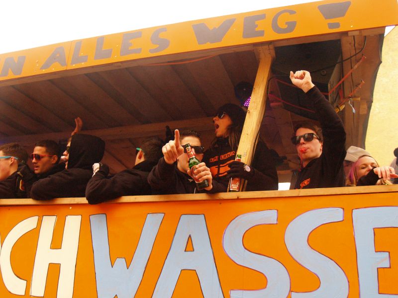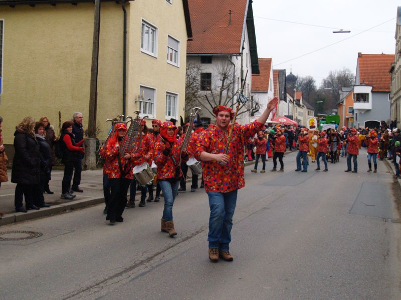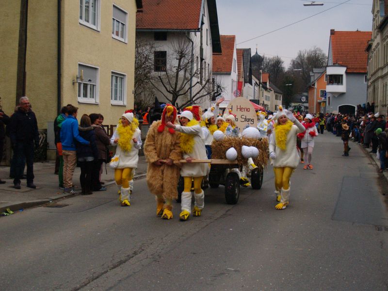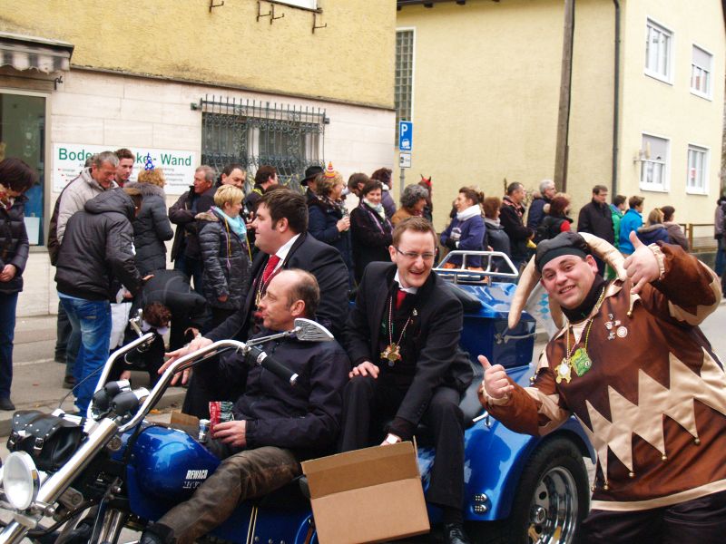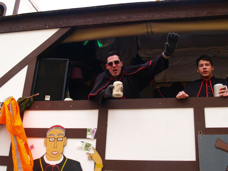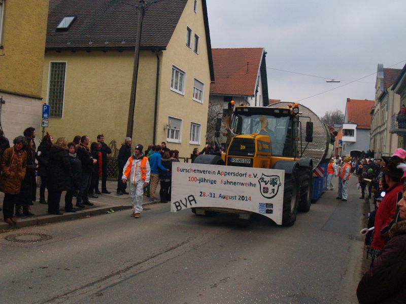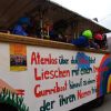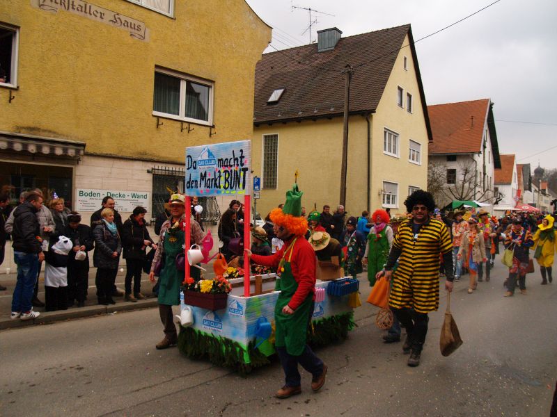 Trockenen Fußes und bei angenehmen Temperaturen starteten um 13.30 Uhr die ersten Wagen. Und die Teilnehmer haben sich natürlich wieder vieles einfallen lassen. Geeignete Mottos fanden sich beim Limburger Bischof Tebartz van Elst, beim amerikanischen Geheimdienst NSA und der bevorstehenden Kommunalwahl. Die GOL (Grüne offene Liste) war als Mensch-Ärgere-Spiel unterwegs „Mensch ECKERe Dich nicht!“ Das Gegenspiel dazu war der Slogan „Wer Ecker nicht wählt bekommt Prügl“. Aufgefallen sind auch die gruseligen Masken der Perchten und Hexen, da schreckte schon mancher zurück, wenn sie ihren Besen schwangen. Fehlen durften auch die Burschenvereine aus den Nachbargemeinden nicht, die auf ihren riesigen Wägen Party machten.
