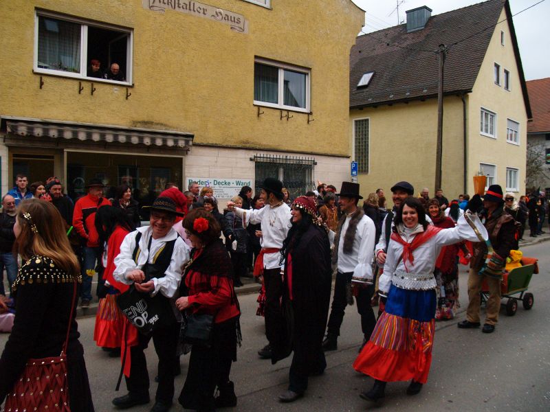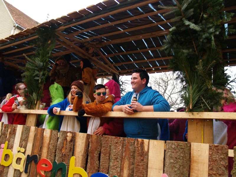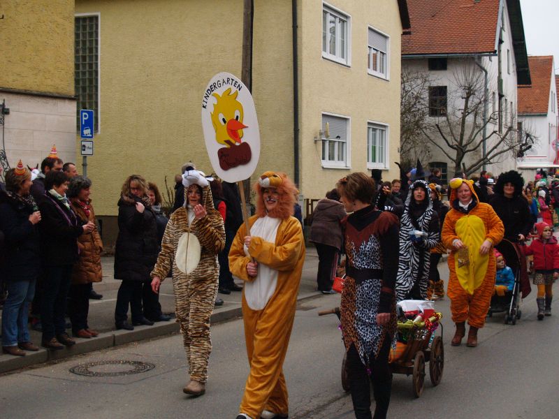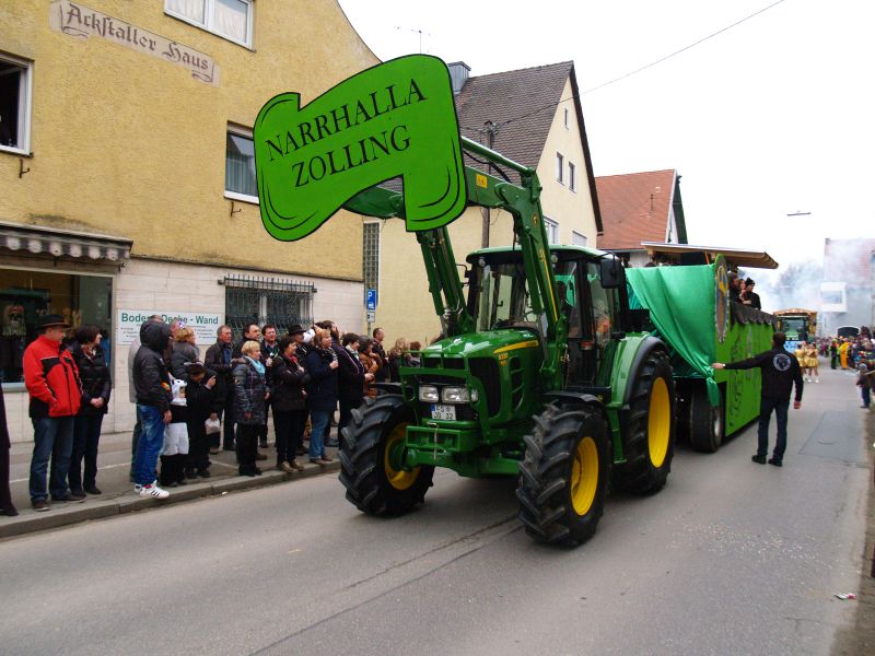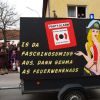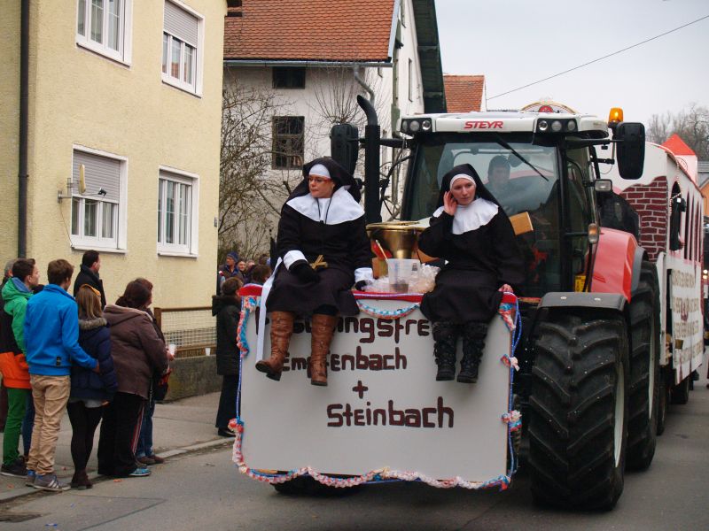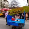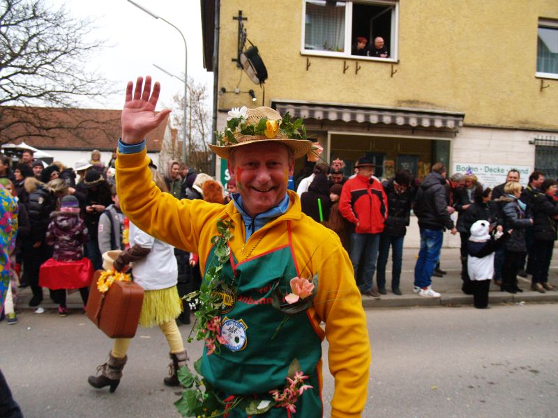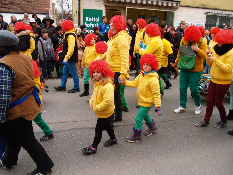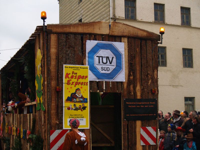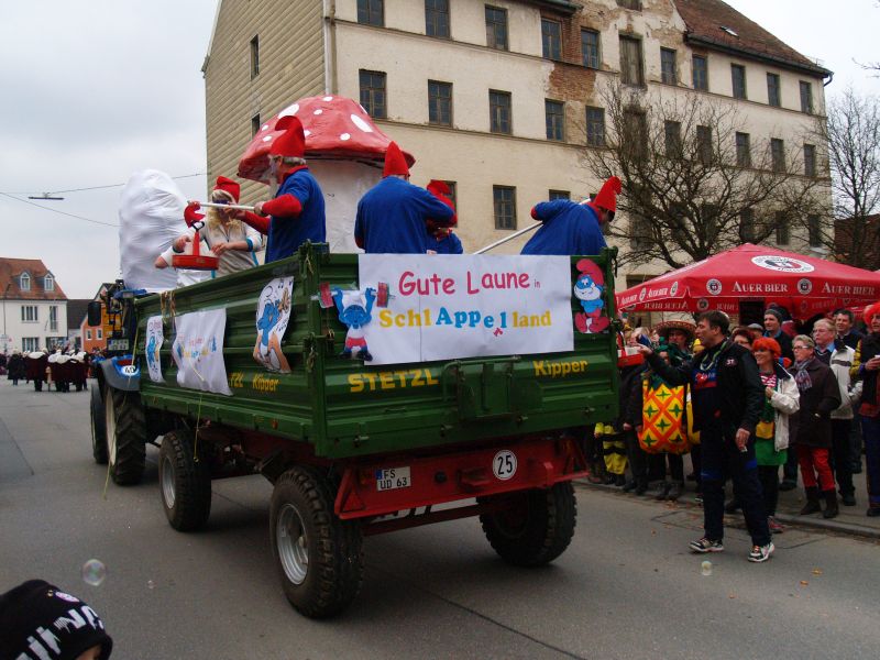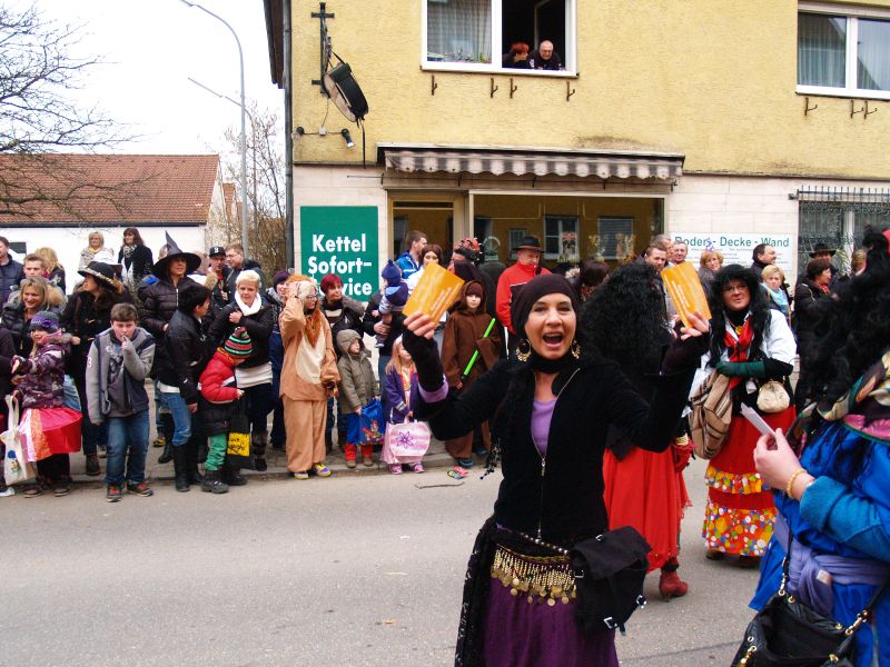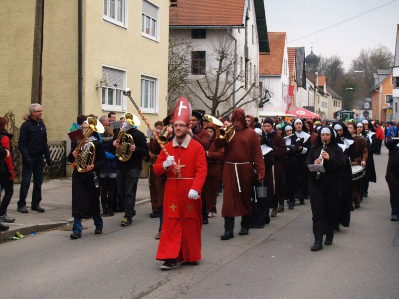 Trockenen Fußes und bei angenehmen Temperaturen starteten um 13.30 Uhr die ersten Wagen. Und die Teilnehmer haben sich natürlich wieder vieles einfallen lassen. Geeignete Mottos fanden sich beim Limburger Bischof Tebartz van Elst, beim amerikanischen Geheimdienst NSA und der bevorstehenden Kommunalwahl. Die GOL (Grüne offene Liste) war als Mensch-Ärgere-Spiel unterwegs „Mensch ECKERe Dich nicht!“ Das Gegenspiel dazu war der Slogan „Wer Ecker nicht wählt bekommt Prügl“. Aufgefallen sind auch die gruseligen Masken der Perchten und Hexen, da schreckte schon mancher zurück, wenn sie ihren Besen schwangen. Fehlen durften auch die Burschenvereine aus den Nachbargemeinden nicht, die auf ihren riesigen Wägen Party machten.