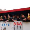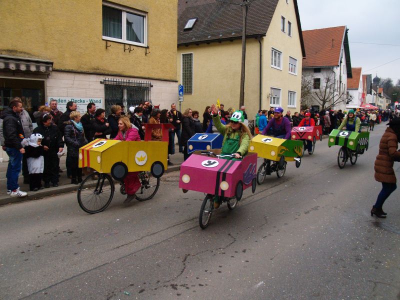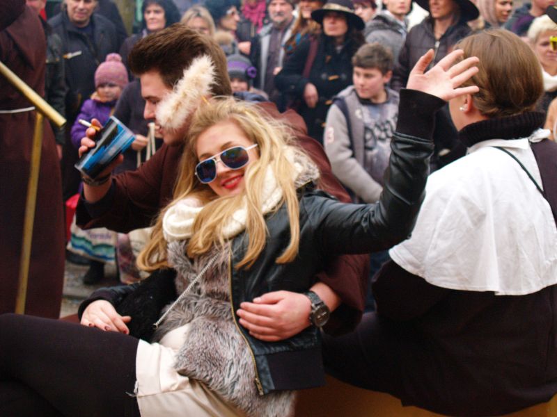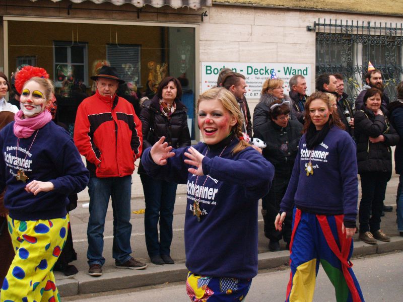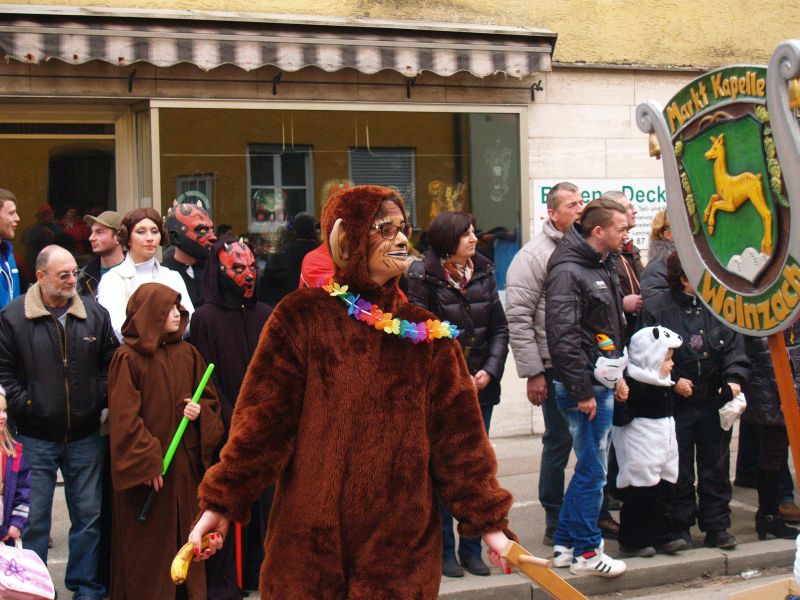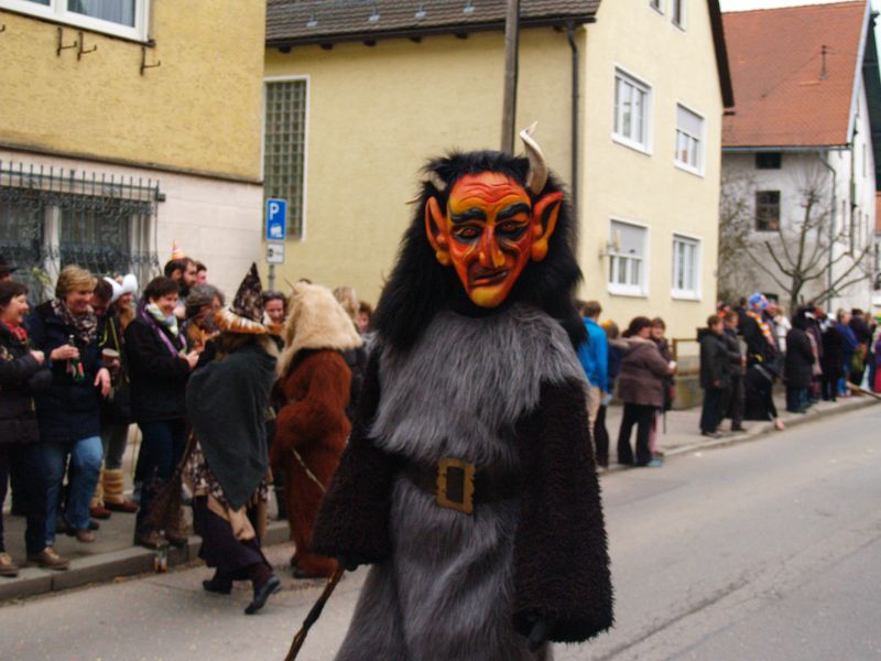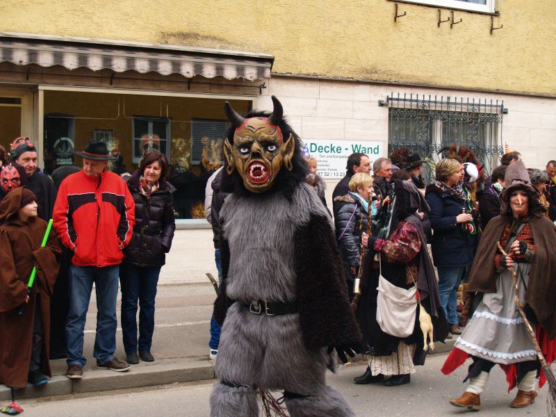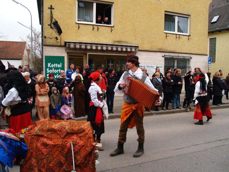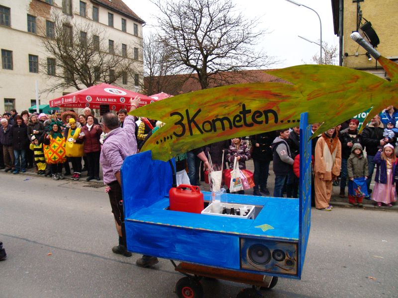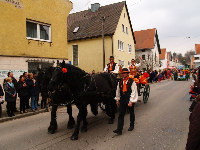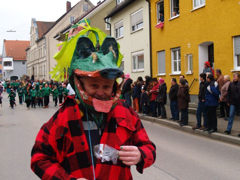 Trockenen Fußes und bei angenehmen Temperaturen starteten um 13.30 Uhr die ersten Wagen. Und die Teilnehmer haben sich natürlich wieder vieles einfallen lassen. Geeignete Mottos fanden sich beim Limburger Bischof Tebartz van Elst, beim amerikanischen Geheimdienst NSA und der bevorstehenden Kommunalwahl. Die GOL (Grüne offene Liste) war als Mensch-Ärgere-Spiel unterwegs „Mensch ECKERe Dich nicht!“ Das Gegenspiel dazu war der Slogan „Wer Ecker nicht wählt bekommt Prügl“. Aufgefallen sind auch die gruseligen Masken der Perchten und Hexen, da schreckte schon mancher zurück, wenn sie ihren Besen schwangen. Fehlen durften auch die Burschenvereine aus den Nachbargemeinden nicht, die auf ihren riesigen Wägen Party machten.