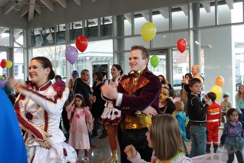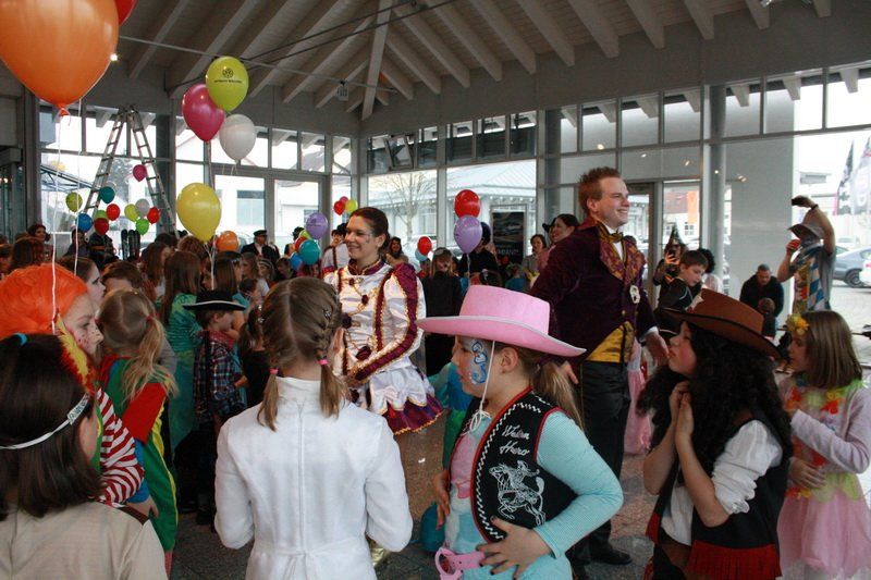 Das hat inzwischen schon Tradition im Autohaus Wallner: Immer am Faschingssamstag werden die Autos in der großen Ausstellungshalle ausgeräumt und ab Mittag stürmen dann viele kleine Ritter, Cowboys, Prinzessinnen, Spider-Männer, Polizisten, Bären, Tiger, Elefanten und Lokomotivführer das Autohaus.