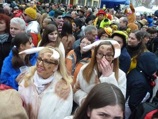 „Maschkara“ aus dem ganzen Landkreis waren praktisch als Hofstaat mitgereist und füllten den Hauptplatz und leerten die Getränkestände. Nach und nach kam der Rest der Feierfreudigen, mal mehr, mal weniger verkleidet, dazu. „Fasching, das ist die Zeit, wo man sich ein sogenanntes Kostüm anzieht, und so tut als ob man ein anderer wäre!“ ein vernünftiger Ausspruch, dessen Urheber hier nicht genannt sein will, aber irgendwie passt er doch.