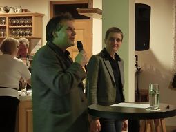 Zur Einstimmung spielte die Auer Geigenmusi mit Bürgermeisterkandidatin Barbara Prügl, danach übernahmen Claudia Bosse, Kreisvorsitzende der Grünen Freising, und Toni Wollschläger, Fraktionssprecher, die Moderation. Sie begrüßten sogar eine Bundestagsabgeordnete, Frau Beate Walter-Rosenheimer und den Landtagsabgeordneten Dr. Christian Magerl, sowie die Landratskandidatin Birgit Mooser-Niefanger, die gleich noch einen alten Bekannten im Gepäck hatte, den Kabarettisten Ludwig Wolfgang Müller.