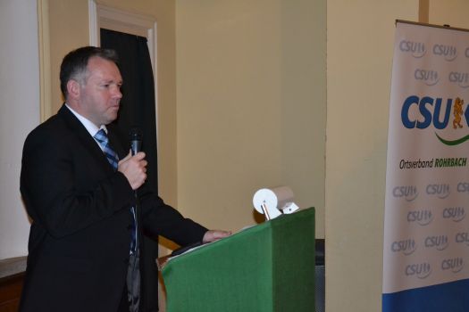 Bürgermeister-Kandidat Johann Wolf nutzte den Abend, um noch einmal auf die politischen Kernaussagen der CSU für Rohrbach einzugehen. Ziel aller Aktivitäten sei, die eigene Heimat miteinander weiter zu entwickeln und voran zu bringen. Dabei sollten auch die Neubürger besser eingebunden werden, damit sie sich heimisch fühlten. So berichtete er von einem Paar aus seinem Ortsteil, das erst kurze Zeit hier wohnt und in Ingolstadt und München arbeitet. „Immer wenn sie nach der Arbeit nach Rohrbach kommen, freuen sie sich, dass siewieder nach Hause kommen“. Er ging danach auf einzelne Wahlkampf-Punkte ein, wie bezahlbares Bauland für Einheimische, Verbesserung des Einheimischen-Modells, Kinderbetreuung und Gewerbeförderung. Gerade beim letzten Punkt legte er Wert darauf, dass nicht nur große, sondern auch kleine Betriebe und Gewerbe unterstützt werden sollten, da sie Arbeitsplätze schaffen und der Gemeinde Steuern einbringen. Weiter ging er auf einzelne kleinere Punkte ein wie Hochwasserfreilegung, Ortsverschönerung oder schnelles Internet ein sowie auf die Unterstützung von Vereinen, da sie zur Integration im Ort beitragen und mit ihrer ehrenamtlichen Arbeit der Allgemeinheit dienen.