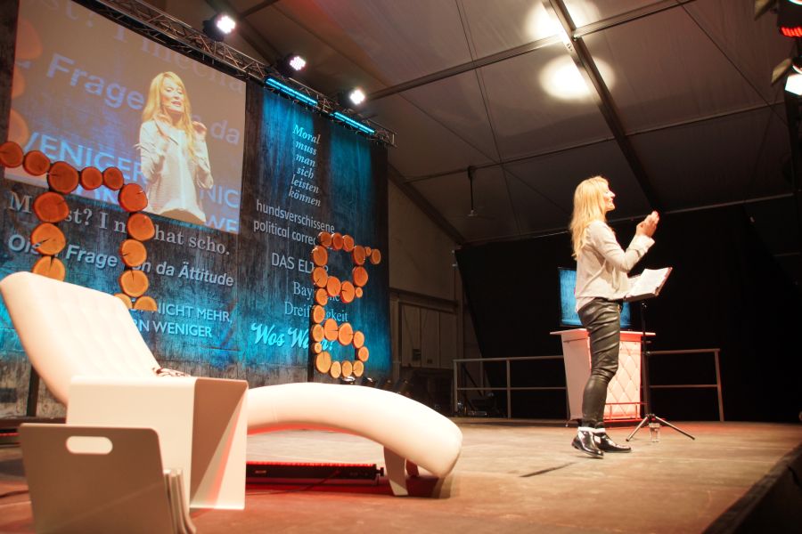 Kaum wurde bekannt, dass beim „Tag der Reise“ von Stanglmeier Reisebüro – Burstouristik Monika Gruber nach Mainburg kommt, waren die 2500 Tickets im Nu ausverkauft. Eine viertel Stunde vor Beginn des Kabaretts „irgendwas is immer“, standen noch gut über die Hälfte der Besucher, in einer nicht enden wollenden Warteschlange, vor dem Festzelt.