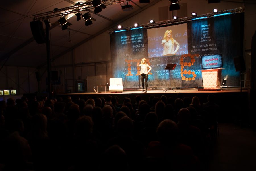 Dicke oder Dünne, Männer und Frauen, Emanzipation, Ehe, Politik, Kindererziehung, Christian Wulff, die NSA Abhöraffäre, Handy- und Gesundheitswahn, Hundebesitzer, Tätowierte und Gleichberechtigung, nichts blieb ohne Kommentar. Ihr Humor scheint grenzenlos zu sein und ihr Mundwerk machte in den über zwei Stunden keine Sekunde Pause.