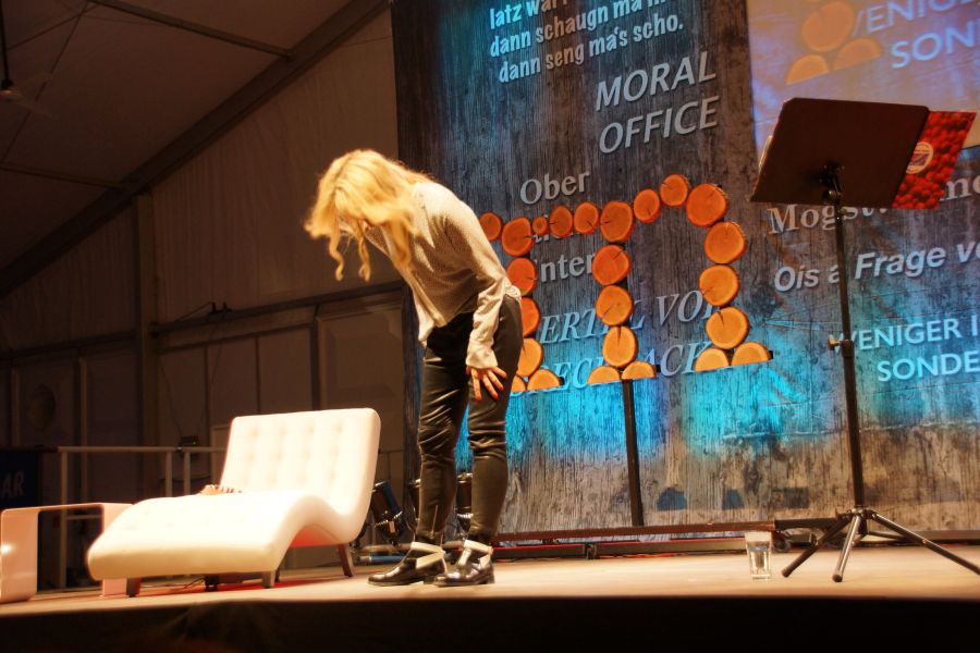 Vom Zeitdruck angetrieben ging die Abfertigung dann im Eiltempo von statten, sodass die Show nur mit einer minimalen Verspätung beginnen konnte. Die „Stunde Null nach Uli Hoeneß“ ist angelaufen und Monika Gruber fragte sich, ob die verhängte Strafe angemessen ist, „wenn schon eine Bestrafung, dann als 60er Präsident, wär ihr Vorschlag, ihm ist aber sicher das Gefängnis lieber“.