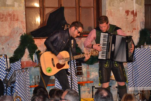 Mit den Shootingstars des bayerischen Kabaretts hatte die SPD wieder einmal den Nagel auf den Kopf getroffen. Da Rocka und da Weitler (bürgerlich (Florian Pfisterer, ausgebildeter Sänger aus dem Allgäu und Florian Pledl, Vollblutmusiker aus dem tiefsten bayrischen Wald) brachten nur mit Akkordeon, Gitarre und Gesang den Saal zum Kochen. Obwohl man beim Akkordeon eher an alpenländische Volksmusik denkt, brachten sie Rock und Popsongs auf die Bühne und schafften es leicht, die Fans zum Mitsingen und Mitklatschen zu animieren. Ein Andreas Gabalier mit seiner Band würde dagegen eher blass aussehen. Und der Witz und Charme der beiden lässt nicht nur die Damen Feuer fangen, besonders dann wenn da Waitler einen Schuhplattler auf die Bühne bringt und da Rocka seine Kommentare abgibt.