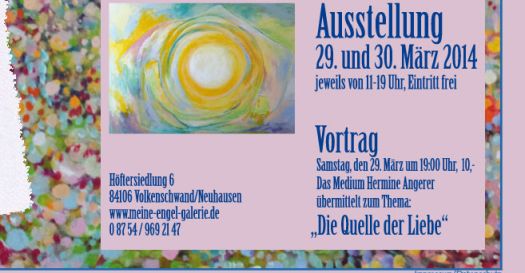Zusätzlich zur Ausstellung findet am Samstag, den 29. März um 19 Uhr ein Vortrag mit dem Titel „Die Quelle der Liebe“ von dem Medium Hermine Angerer statt. Der Eintritt zum Vortrag kostet 10,- Euro.