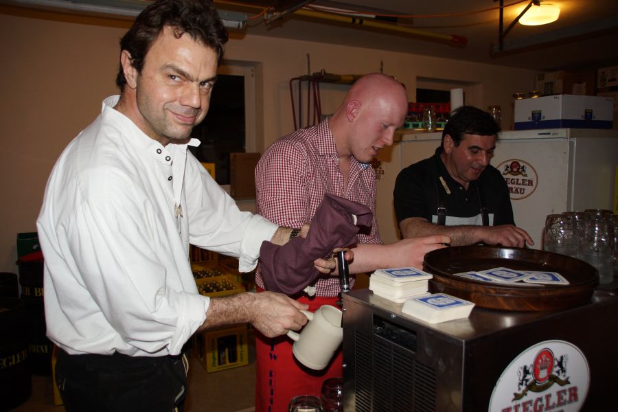 Wie im Theater, blieben auch hier einige Plätze frei, was der guten Stimmung aber keinen Abbruch tat. Die Speisekarte hatte für jeden Geschmack etwas zu bieten und das gute Ziegler-Bier floss in Strömen, besonders natürlich der dunkle „Herminator“. Für die musikalische Unterhaltung sorgten die „Sumpfbiber“ und den Fastenprediger mimte diesmal der Steinbacher Günther Schott.