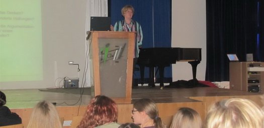Die Sprachkritiker wollen in diesem Zusammenhang jedoch keine politische Position beziehen oder political correctness um ihrer selbst willen einfordern. Vielmehr sollen die Sprecher dazu angeregt werden über den eigenen Sprachgebrauch nachzudenken. Daher beendete die Referentin ihren Vortrag mit dem Appell an die Zuhörer Verantwortung dafür zu übernehmen, was man sagt und wie man es sagt. Im anschließenden Gespräch mit den Schülern verwies Frau Dr. Janich darauf, dass etwa das Unwort des Jahres 2011, Döner-Morde in der aktuellen öffentlichen Berichterstattung durch NSU-Morde ersetzt worden sei. Hier habe offenbar tatsächlich ein Bewusstseinswandel stattgefunden.