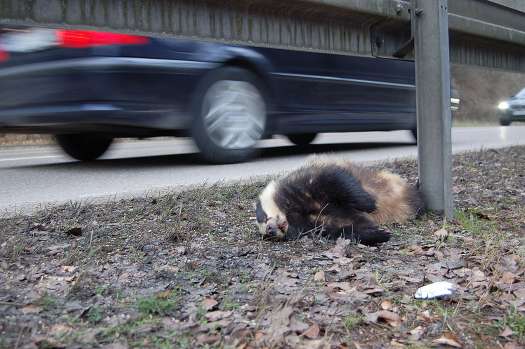 Ein Dachs auf dem Weg zur Nahrungssuche wurde hier Opfer des Straßenverkehrs auf der Pfaffenhofener Anton-Schranz-Straße.