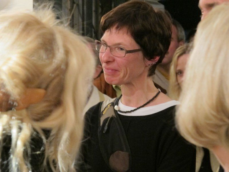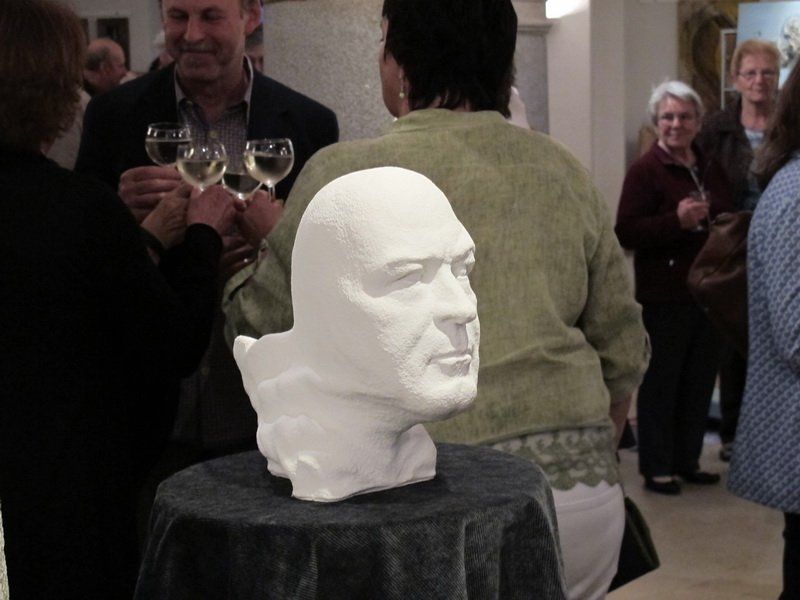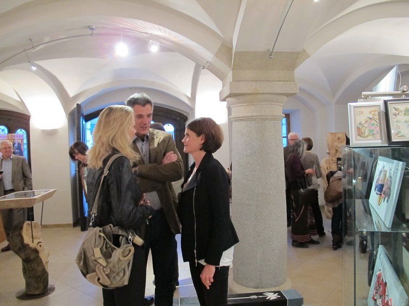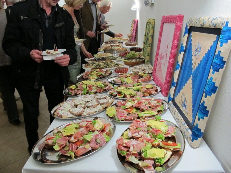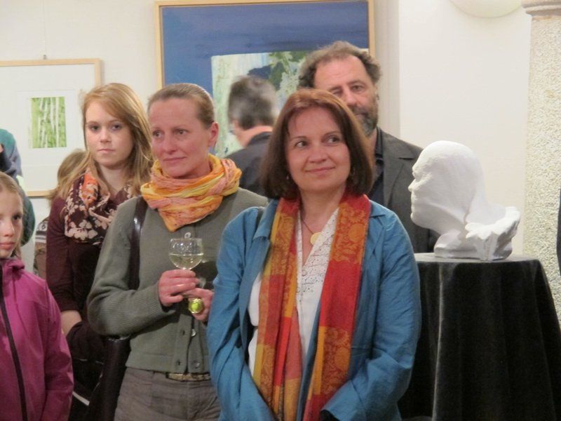 Der Andrang ließ nicht auf sich warten. Nach einjähriger Pause lud Nathalie Ponsot zu ihrer typischen Ausstellung in den Rathauskeller, um eigene Werke und die von Peter Trapp (Skulpturen) und Martina Ulrich (Gemälde) zu zeigen, garniert mit Musik (Voice & String) und einem großen Buffet.