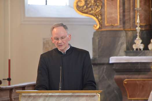 Der Gosseltshausener Pfarrer Schemmerer stellte die rhetorische Frage, was denn eigentlich die Karwoche sei. Dabei wies er eingangs darauf hin, dass "Christus in seinem Leiden uns seine ganze Liebe geschenkt hat", um dann auf die österliche Liturgie einzugehen.