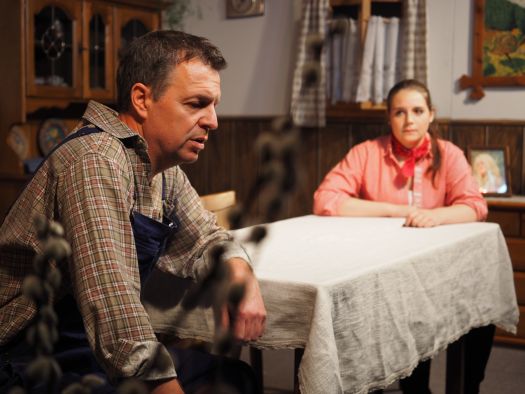 Wieder mit von der Partie ist heuer Routinier Norbert Thurner, der nach einer schöpferischen Pause diesmal gleich in die Hauptrolle schlüpft: Als Bauer Josef Fesl hatte er über weite Strecken den „Dorfdepp“ zu mimen, bis sich zum Schluss herausstellt, dass der vermeintlich Dümmste doch vielleicht der Klügste war. Als Tochter Leni an der Seite des Bauern Fesl gab Anna Bergmann ihr Bühnendebüt bei den Uttenhofenern: Authentisch, witzig und mit gekonnter Mimik – ein rundum gelungener Einstand. Angelika Stolz durfte in die Rolle der ratschlustigen Schwägerin Walli Rampftl schlüpfen, die zum Vormund des Dorfdeppen Josef Fesl bestellt war. Mit Rechten und Pflichten hatte sie schwer zu kämpfen, und maustot umfallen hätte sie wollen, wenn ihr dabei nur ein Sterbenswörtchen entfahren wäre – nicht nur diese Szene war herrlich herausgespielt! Der Rechtsanwalt Dr. Peter Herlitz (Norbert Brenner) stellte sich letztlich dann doch nicht als „Preiß“ heraus, sondern als „waschechter Woikaschbecker“ – hier hatten die Theaterer an der wahren Identität des Darstellers Anleihen genommen, ebenso wie am Namen des Dorfpfarrers: Alois Gurtner konnte nicht nur im Publikum begrüßt werden, er wurde auch auf der Bühne erwähnt. Der fünfte im Bunde der diesmal etwas kleineren Riege der Darsteller war Horst Kaindl als Bürgermeister: Gewohnt gekonnt – mehr gibt es hier nicht zu sagen.