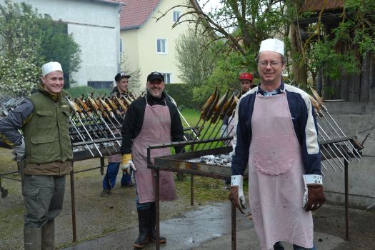 Und ab 10 Uhr ging der Trubel los. Jeder wollte seine bestellten Fische holen oder kam ohne Vorbestellung vorbei. Die Käufer hatten die Auswahl an frischen oder gebackenen Forellen, geräucherten Aalen und Forellen sowie frischen Karpfen. Und Steckerlfisch gab es massenhaft, allein davon gingen gut 320 Kilogramm an die Kunden, dazu 500 bis 600 Forellen und eine Unmenge an Aalen und Karpfen. Wenn gewünscht oder bestellt wurden die Fische frisch paniert und in einer großen Fritteuse gebacken. So hatten viele Familien am Karfreitag ihren Fisch frisch auf dem Tisch, und die Hausfrauen hatten nicht mehr zu viel Arbeit mit den Zutaten für das Mittagsmahl. Bis auf einen kleinen privaten Fischverkauf im Sportgelände war der Verkauf der Sportangler für Rohrbach die einzige Möglichkeit, sich an diesem Tagvor Ort mit frischem Fisch zu versorgen.