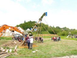 Schon ganz früh am Morgen fuhren die Burschen mit dem Bulldog in den Wald um den Baum zu holen. Bevor es ans Aufstellen ging, war natürlich die obligatorische Stärkung mit Weißwürsten und Brezn nötig. Unter den kritischen Augen der Dorfgemeinde schafften sie es mit viel „Hauruck“ und Muskelschmalz nach gut drei Stunden den Baum aufzustellen. Anschließend wurde mit Kaffee und selbstgebackenen Kuchen, gestiftet von den Larsbacher Frauen, gefeiert und geratscht. „Ein bisschen geärgert hat er uns schon in diesem Jahr, aber dann hat ja doch noch alles gepasst“, meinte Markus Rasche, als er sich bei allen Helfern bedankte.