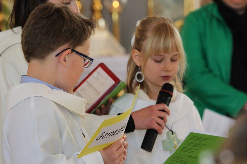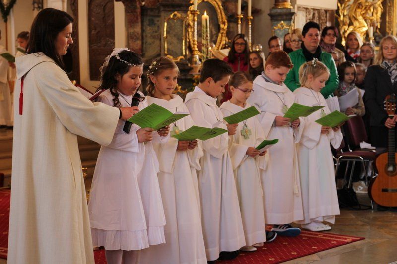 „Es ist ein Festtag für die ganze Pfarrgemeinde“, begrüßte Pfarrer Johann Braun nicht nur die 36 Kommunionkinder, sondern auch die zahlreichen Eltern und Verwandten zu dieser Feierstunde. „Heute erneuern wir das Taufversprechen und begrüßen euch in unserer Mitte “, so Braun weiter.