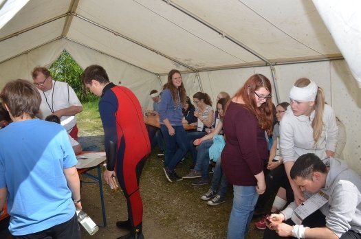 Im Einsatz waren gut 70 Einsatzkräfte, die sich um insgesamt 40 "verunglückte" Darsteller kümmern mussten, die ihnen nach Kräften realistische Bedingungen vorspielten. Vom geschockten Schwimmer bis hin zum blutenden Spaziergänger war dabei alles an Opfern aufgeboten, auf die die Retter bei einem derartigen Geschehnis stoßen können. Neben Wasserwacht-Schnelleinsatzgruppen aus Reichertshofen, Wolnzach, Geisenfeld, Pfaffenhofen und Manching kamen unter anderem auch die Rettungshundestaffel und das Kriseninterventions-Team zum Einsatz.