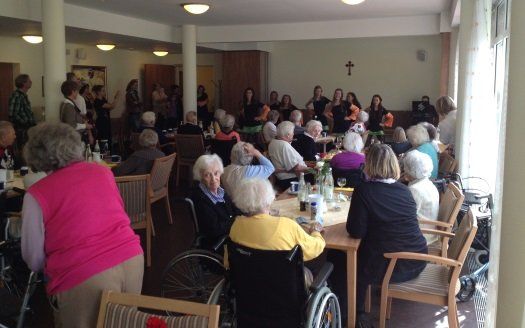 Eine Mitarbeiterin der Einrichtung hat mit den Gästen des Hauses getöpfert. Im Wohnbereich spielte die Musik und im Restaurant traten die Shadow Dancer auf.