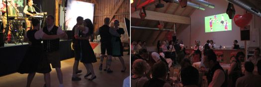 Wo passt ein bayrisch-traditionelles Fest in der Region besser hin als im Stockerhof-Stadl? Das Ambiente ist wie dafür geschaffen und so war der Saal auch bereits seit langem ausverkauft. Sogar die Tenne wurde geöffnet, einerseits um dem Besucheransturm gerecht zu werden, andererseits um den Fußballfans unter dem Partyvolk die Möglichkeit zu bieten, das Spiel auf einem Beamer zumindest in bewegten Bildern mit zu verfolgen. Für das leibliche Wohl sorgte die Stocker-Küche mit vielen bayrischen Schmankerln wie Spanferkel und Steckerlfisch.