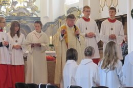 5 Jungen und 5 Mädchen wurden am Sonntagvormittag bei der 10.30 Uhr-Messe als neue Ministranten in die Kirchengemeinschaft St. Laurentius von Pfarrer GBR Hans Braun feierlich aufgenommen.