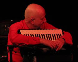 Manfred Leuchter, geboren in der Nähe von Aachen, lebt schon seit geraumer Zeit zumindest immer wieder mal in Marrakesch und ist dort - wie er dem Publikum nicht ohne Stolz erzählt - Anteilseigner einer Kamel-Karawane; bei den musikalischen Auftritten ersetzt er mit seinem Akkordeon eine komplette Band inklusive Rhythmusgruppe.
