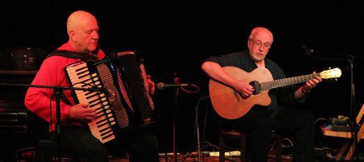 "Nach all den Jahren gemeinsamer Tourneen sind wir manchmal wie ein altes Ehepaar; dann gibt es aber auch immer wieder Überraschungen, wenn wir uns nach Zeiten der - musikalischen - Trennung wiedertreffen." Manfred Leuchter war beispielsweise von der romantischen Ader seines Partners überrascht, als dieser seine neue Komposition "Strolling Through Florenz" von einer vorangegangenen Solo-Tour mitbrachte. Unerwartet abwechslungsreich war das Konzert, mal mit dem Lead des Akkordeons, dann die Akustikgitarre vorne weg, teilweise aber auch jedes Instrument solo gespielt, oder auch Manfred Leuchter als Begleiter der Gitarre an seinem "Akkordeon-Schlagwerk" - die Besucher in der nicht ausverkauften Kulturwerkhalle freuten sich über ein kurzweiliges Programm musikalischer Darbietungen und interessanter Geschichten aus der ganzen Welt.