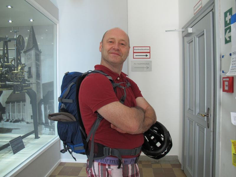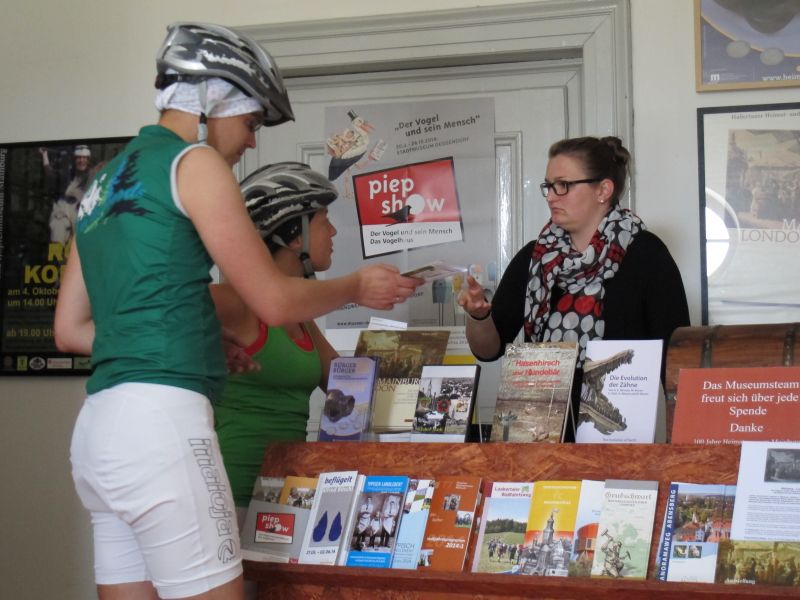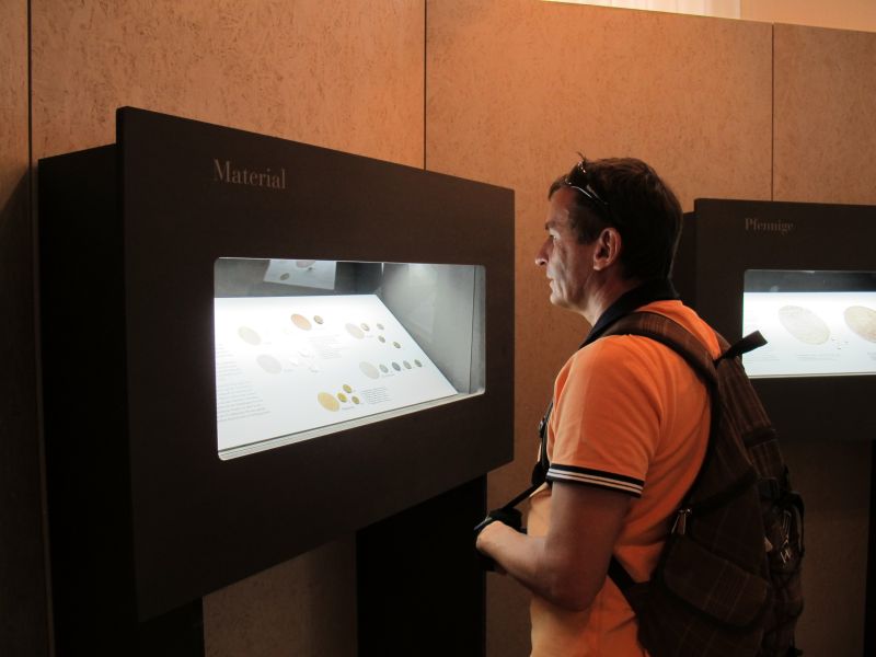 Dazu gehörte eine Stempelkarte, ein Infozettel mit den verschiedenen Stationen und ein 0,2 l Bierkrüglein. Mit dem Fahrrad oder zu Fuß ging es von hier los. Erste Stempelstelle war im Heimat- und Hopfenmuseum und bei der Gelegenheit konnte auch gleich die neue Münzausstellung bestaunt werden.