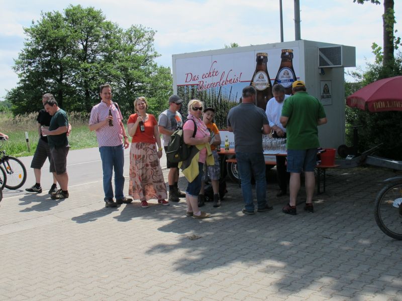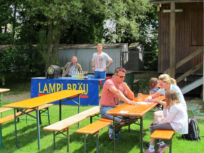 Nächster Halt war am Vereinsheim des Schäferhundvereins. Hier gab es den zweiten Stempel, ein Büchsenwerfen für die jüngeren Teilnehmer und auch das erste Bier (Lampl-Brauerei) von fünf verschiedenen Brauereien stand bereit.