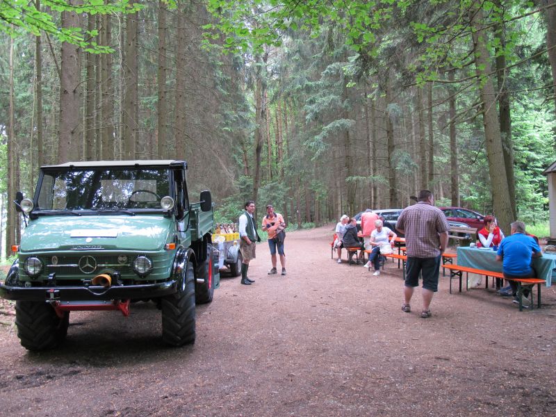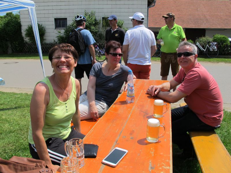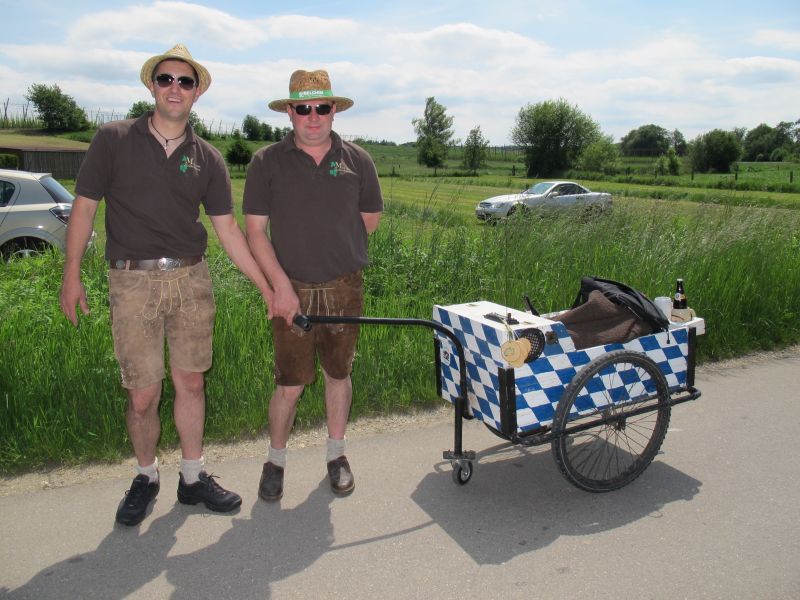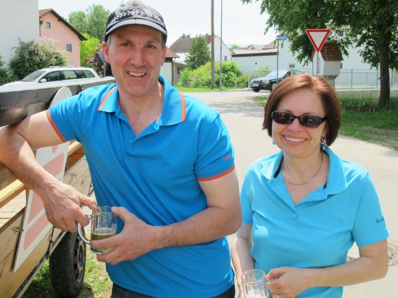Der dritte Stempel und eine weitere Erfrischung, hier von der Brauerei Pöllinger, wartete in Meilenhofen. Auch dort nutzten viele der Fußgänger dankbar die zwei PS’igen Mitfahrgelegenheiten, um sich bequem zur nächsten Station kutschieren zu lassen.