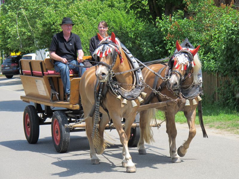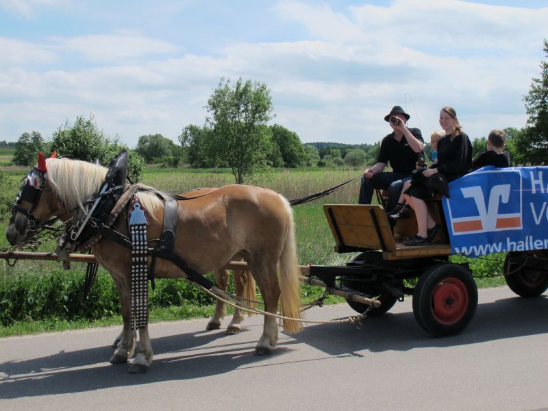 Schon ein paar Kilometer weiter, in Unterwangenbach, war die nächste Anlaufstelle für kleine und große Durstige. Hier gab es ein Kinderschminken, kühle Getränke vom Joferbräu und eine von drei Pferdekutschen stand für die inzwischen müde gewordenen Wanderer bereit.
