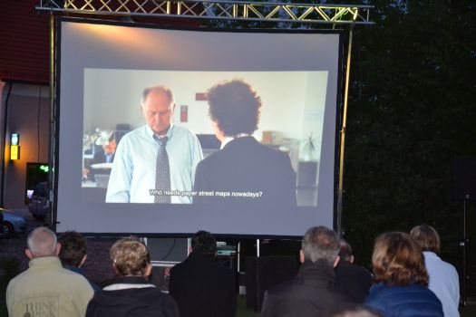 Bei kühler Witterung am Abend draußen zu hocken war kein Vergnügen, auch wenn viele Filmfreunde zur Kurzfilmnacht im Rahmen des Kultursommers teilweise ihre Wolldecken mitgebracht hatten oder zumindest warm angezogen waren. Doch die gut 150 Besucher der Filmnacht auf der „Insel“ hatten damit kein Problem, auch wenn einige nach kurzer Zeit wieder den Platz verließen.
