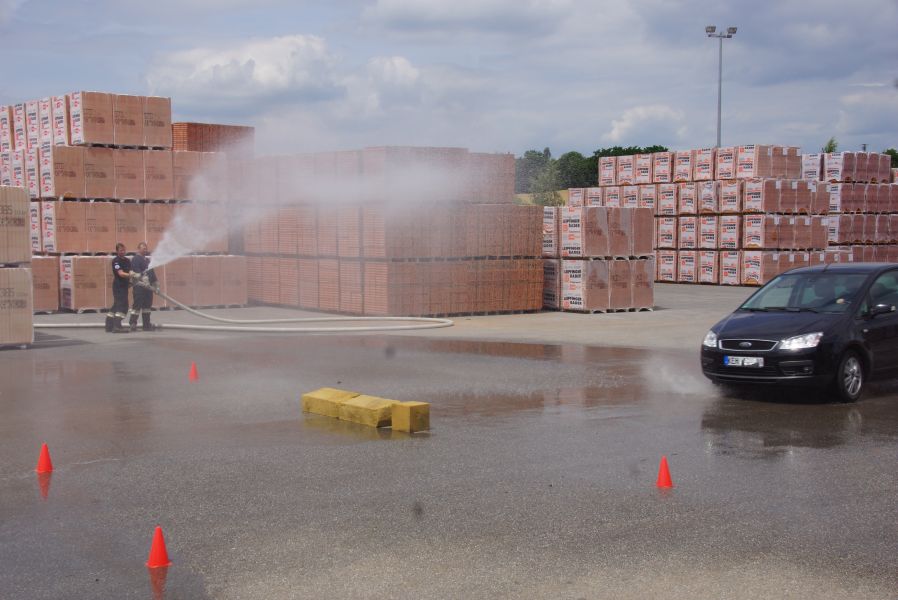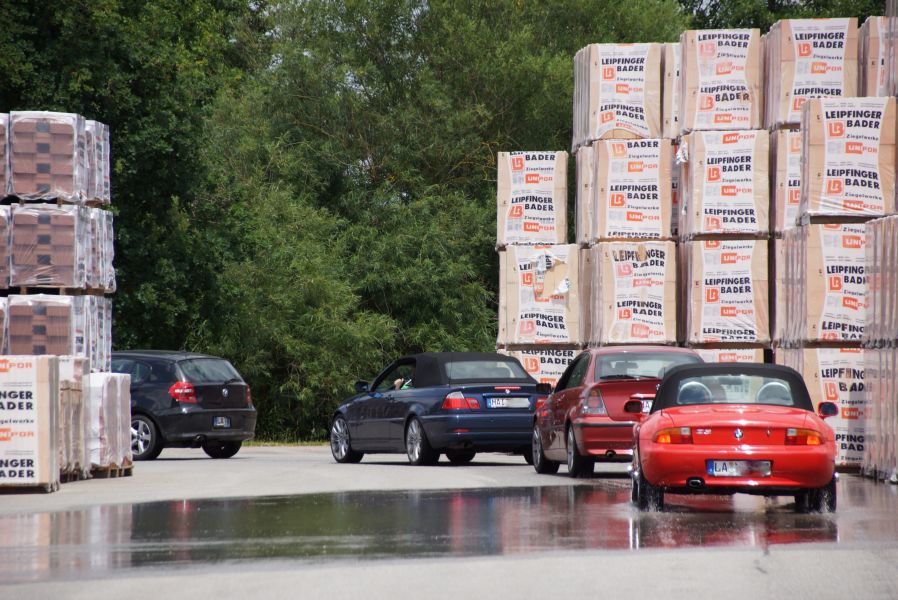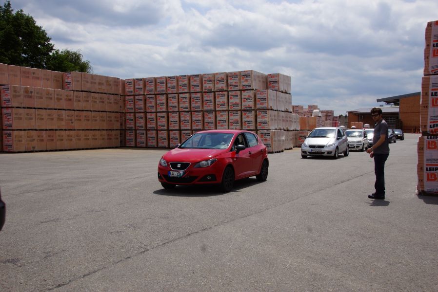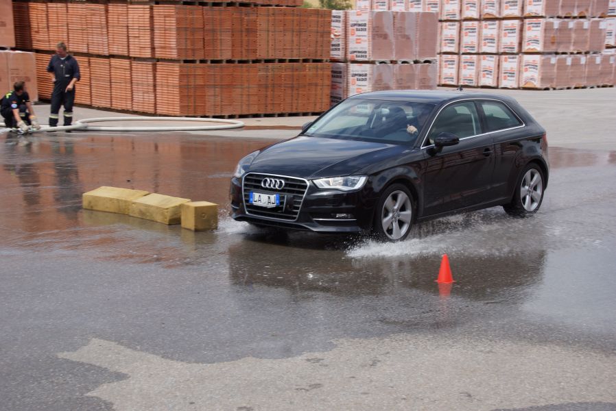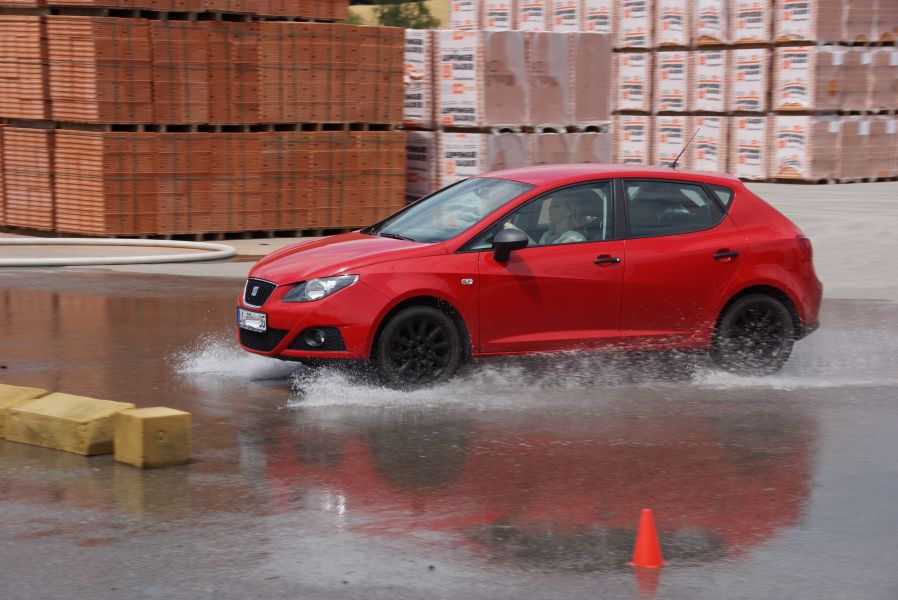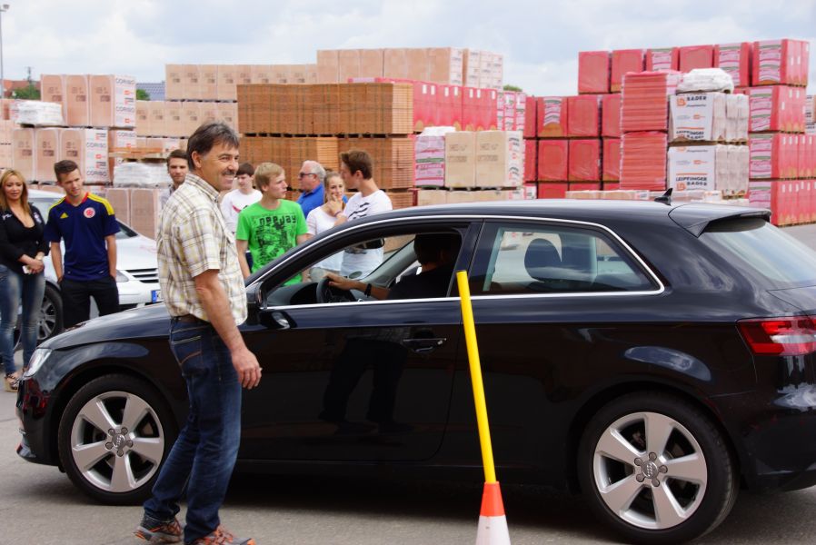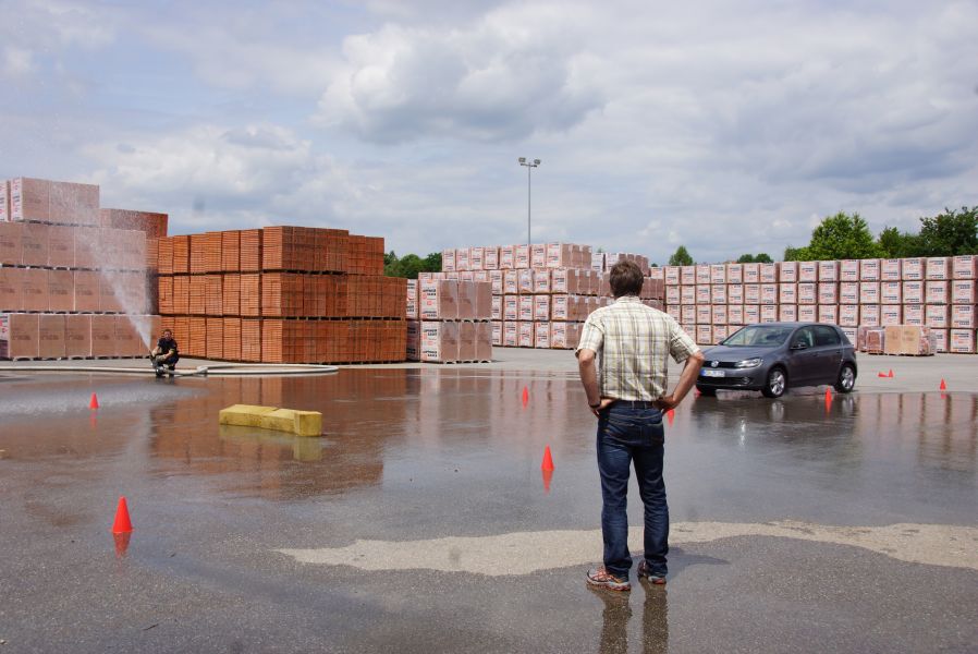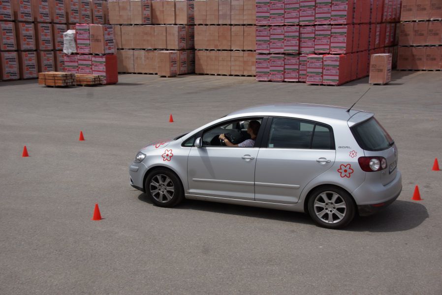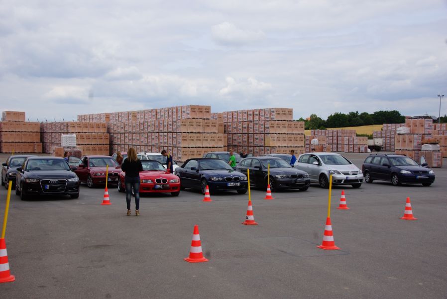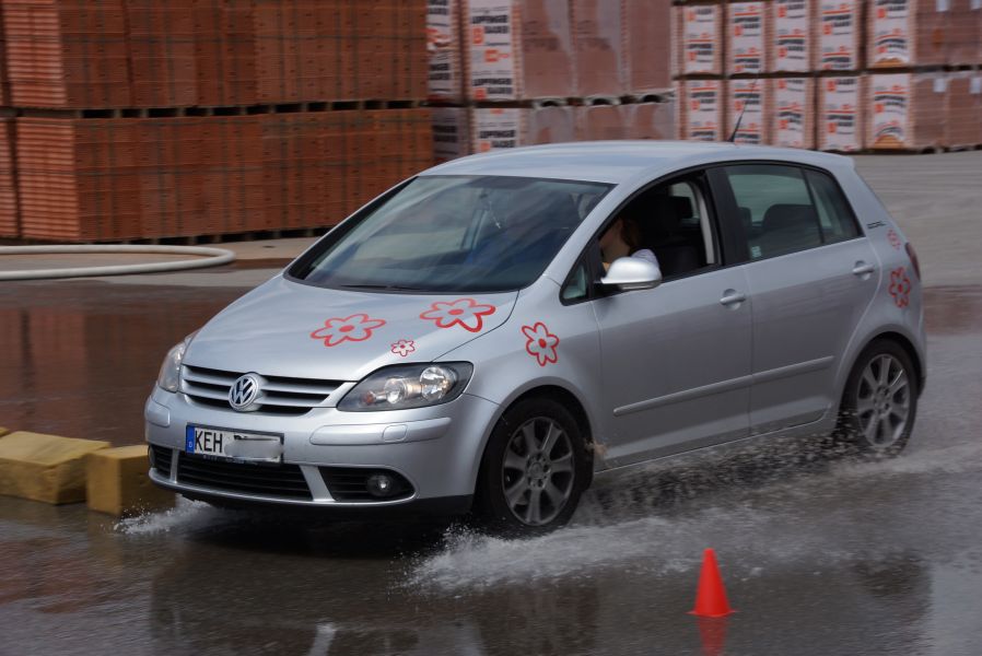 Mit ihren eigenen Autos übten im Anschluss die zwölf Teilnehmer Slalom fahren, Fahrzeugabmessungs- und Parkhausübungen, die von den Trainern erklärt, überwacht und besprochen wurden. Nach der Mittagspause ging es mit Ausweich- und Bremsübungen bei trockener und nasser Fahrbahn weiter, die Bewässerung dafür übernahm die Freiwillige Feuerwehr Puttenhausen.