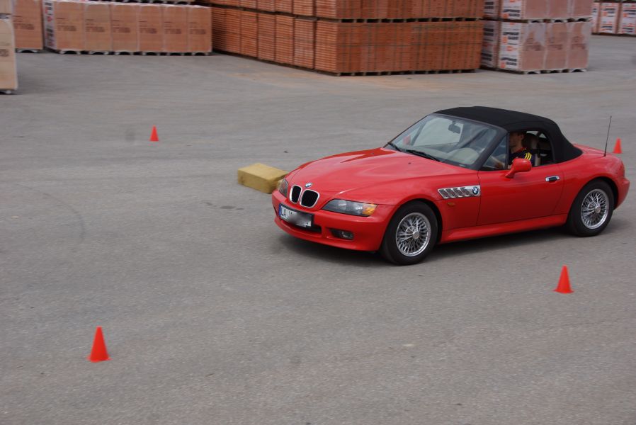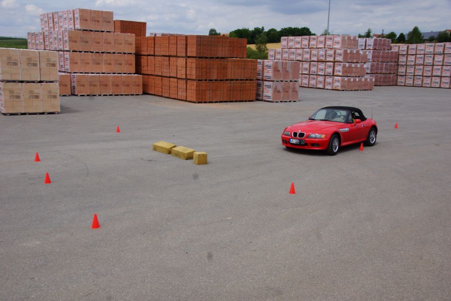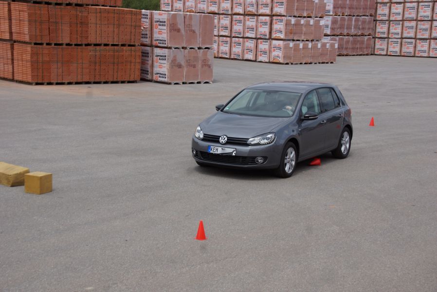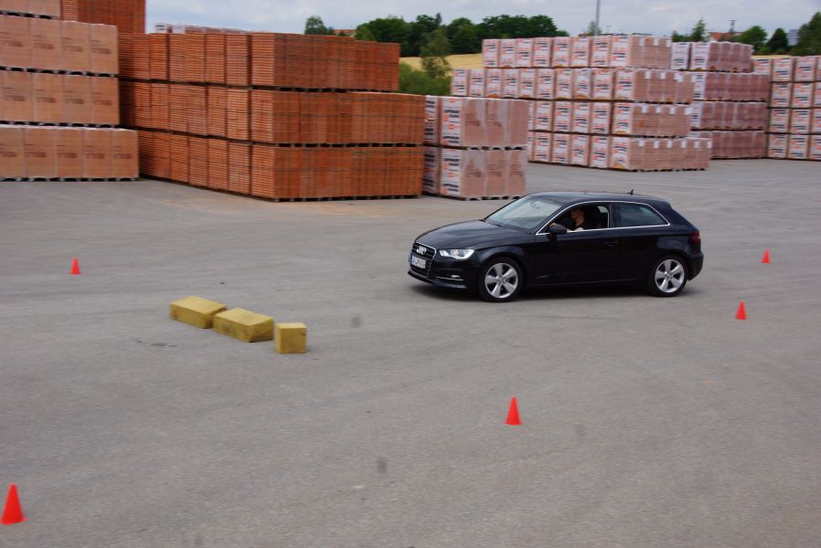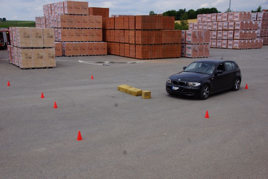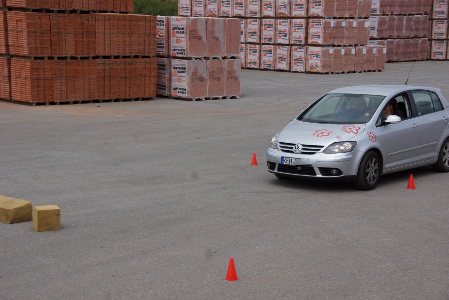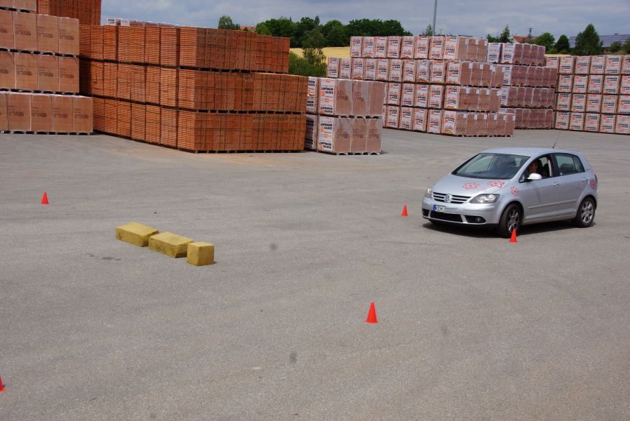 Anfangs fielen noch viele Pylonen den Rädern zum Opfer und auch das Hindernis aus Schaumstoff flog des Öfteren im hohen Bogen davon oder wurde ebenfalls überfahren. Im Laufe des Vormittags wurden die Fahrerinnen und Fahrer aber immer sicherer und auch die Geschwindigkeit, mit denen die Übungen ausgeführt wurden, nahm deutlich zu.