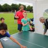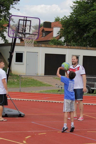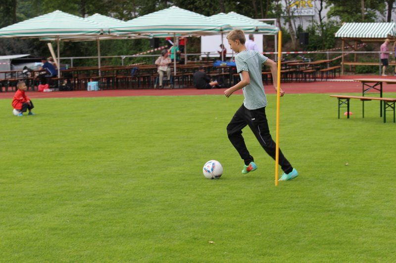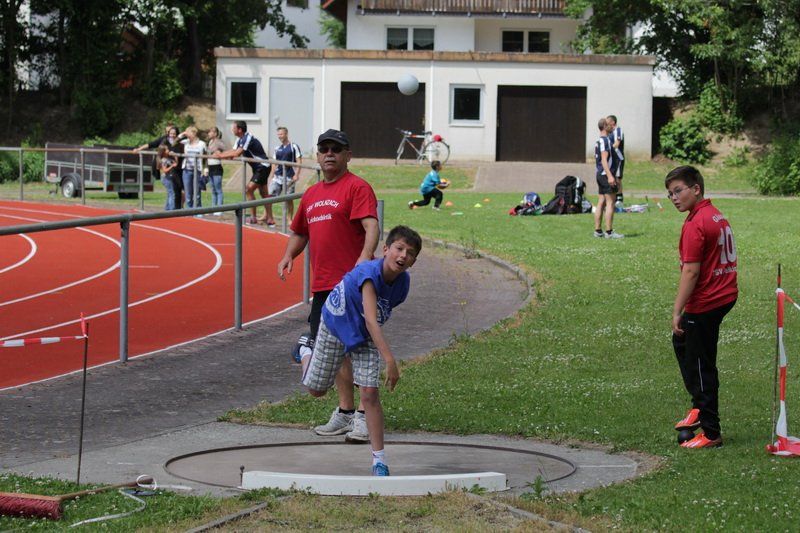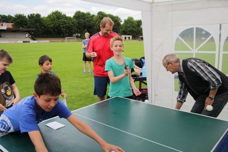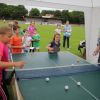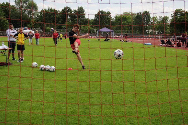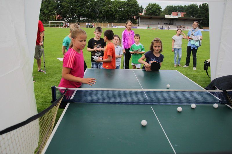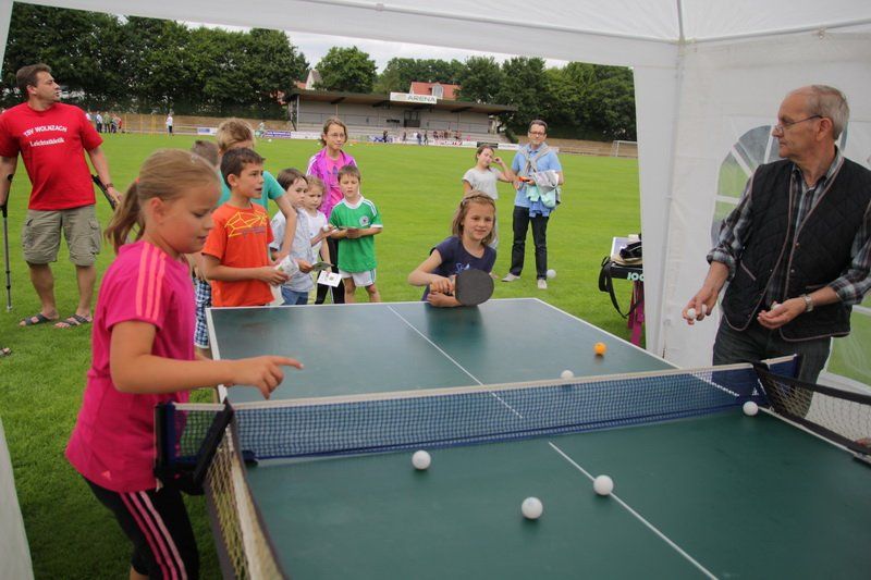 Und so trat für einen Tag das, was im Sport oft das Wichtigste ist – das Siegen – für einen Tag in den Hintergrund. Einfach Mitmachen und Spaß haben, das war die Devise. „Wir wollen damit zeigen, dass Sport viel Freude bringen kann“, so der TSV Vorstand. Und das gelang dem TSV auch. Ob beim Kugelstoßen, beim Dribbeln mit dem Basketball oder beim Spielen gegen den Tischtennisroboter stand der Fun im Mittelpunkt. Und während die Jungs und Mädchen fleißig im Stadion unterwegs waren und auf die Jagd nach den begehrten Stempeln gingen, spielten die Wolnzacher Kicker gegen eine Firmenauswahl der Altmann AG. Auch hier stand natürlich nicht der Sieg im Zentrum, doch eines wollten beide Teams dann doch nicht, das Spiel durch ein Tauziehen entscheiden, wie Hans Frank bei einem Unentschieden angekündigt hatte. So entwickelte sich ein munteres Spiel mit vielen Aktionen und Toren, das die Wolnzacher am Ende gewinnen konnten. Das jedoch war an diesem Tag eher Nebensache.