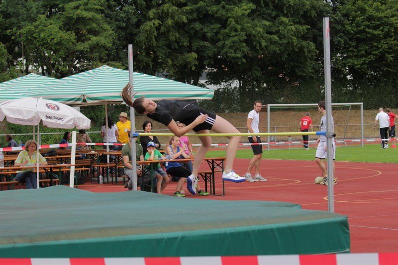Denn auch die Fußballer zog es nach dem Abpfiff an die verschiedenen Stationen. „Natürlich wollen wir auch sehen, was die anderen Abteilungen machen.“ Doch nicht bei allen Sportlern stand der Spaß im Vordergrund. Anlässlich des Tages des Sports konnte die Leichtathletikabteilung ein bayerisches Hochsprung-Meeting nach Wolnzach holen. Während die Kids nun im Stadion unterwegs waren, genossen viele Eltern im Schatten Kaffee und Kuchen und trieben die Sportlerinnen und Sportler mit lautem Klatschen zu Höchstleistungen. Am Ende konnte Harald Rapp bei den Frauen Jana Peter mit übersprungenen 1,55m und bei den Männern Manuel Marko mit übersprungenen 1,96m, gratulieren.